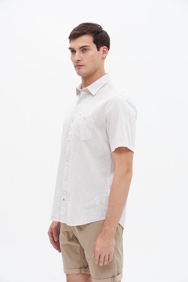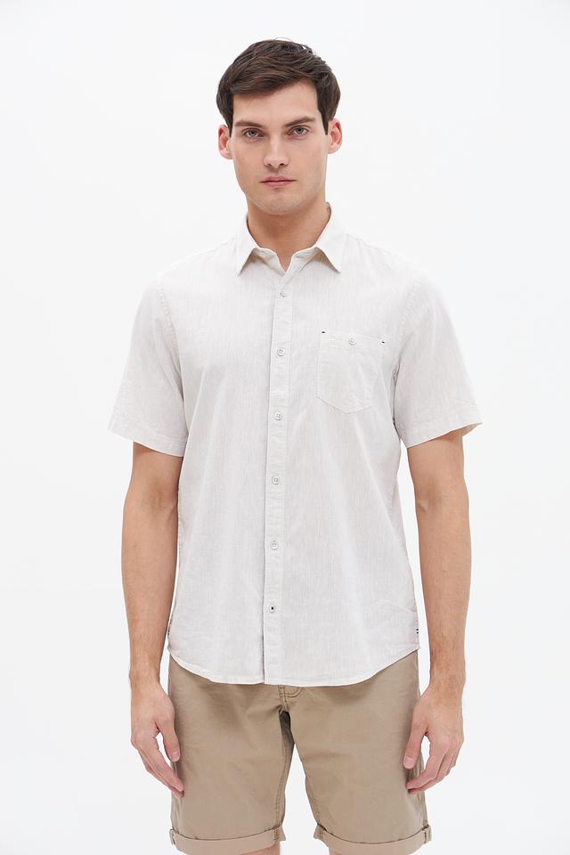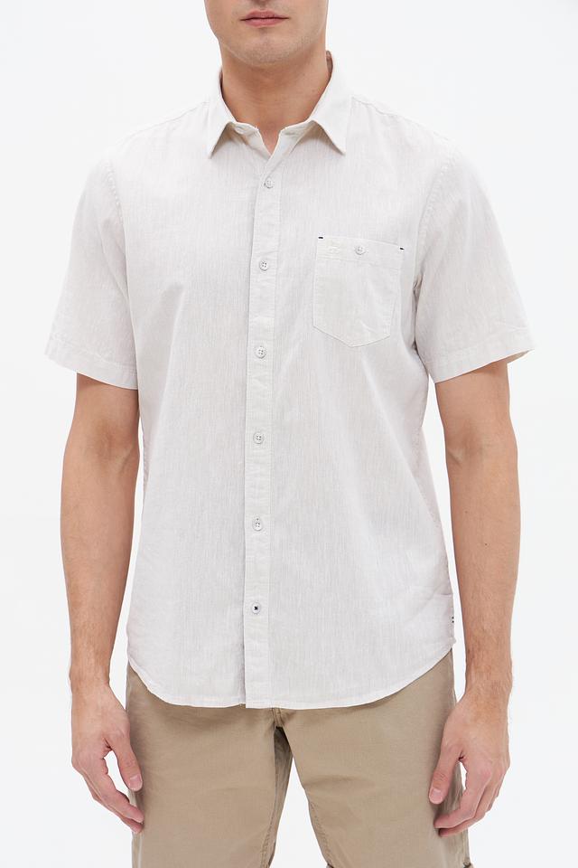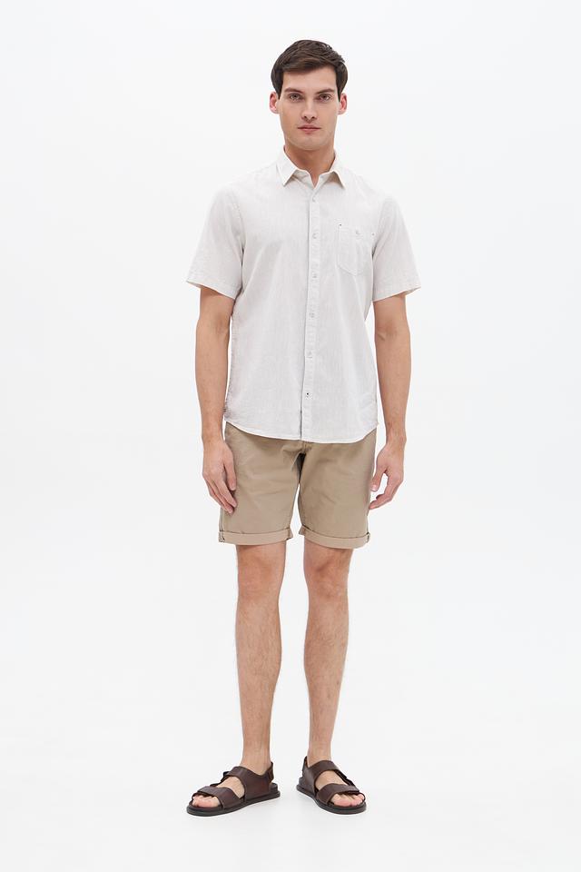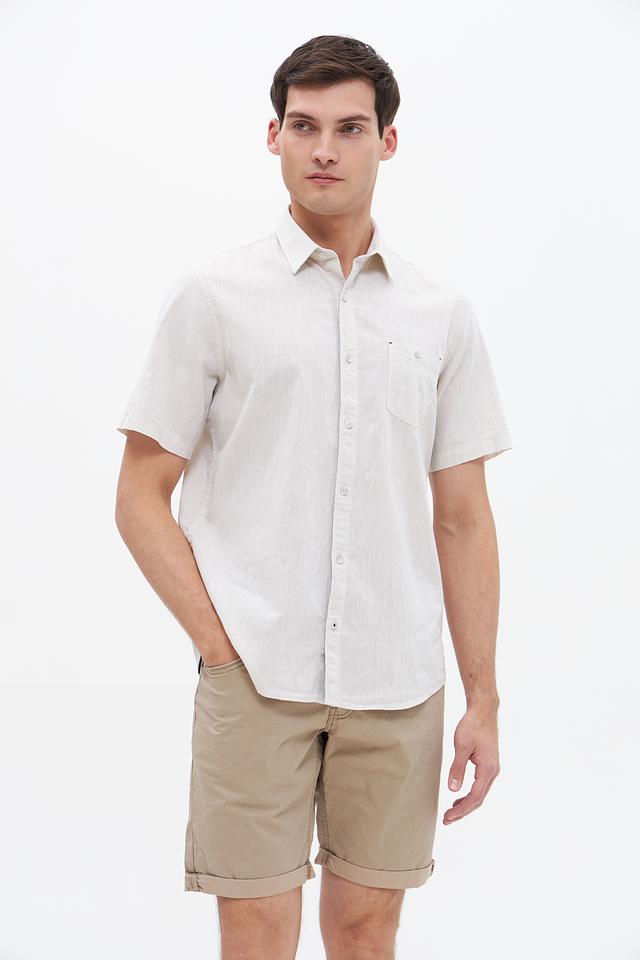 Мужская рубашка Lerros короткого рукава бежевого цвета выполнена из натурального хлопка с добавлением льна. Лёгкая и дышащая ткань идеально подходит для летнего сезона, обеспечивая комфорт в жаркую погоду. Состав: хлопок 80%, лен 20%