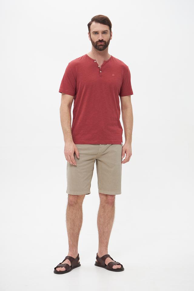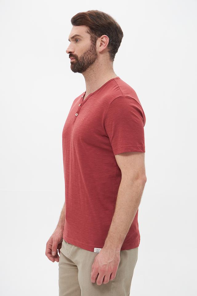 Мужская футболка Lerros терракотового цвета с короткий рукавом и планкой на пуговицах. Изготовлена из 100% хлопка, обеспечивающего комфорт и воздухопроницаемость. Отличный выбор для повседневного образа. Состав: хлопок 100%