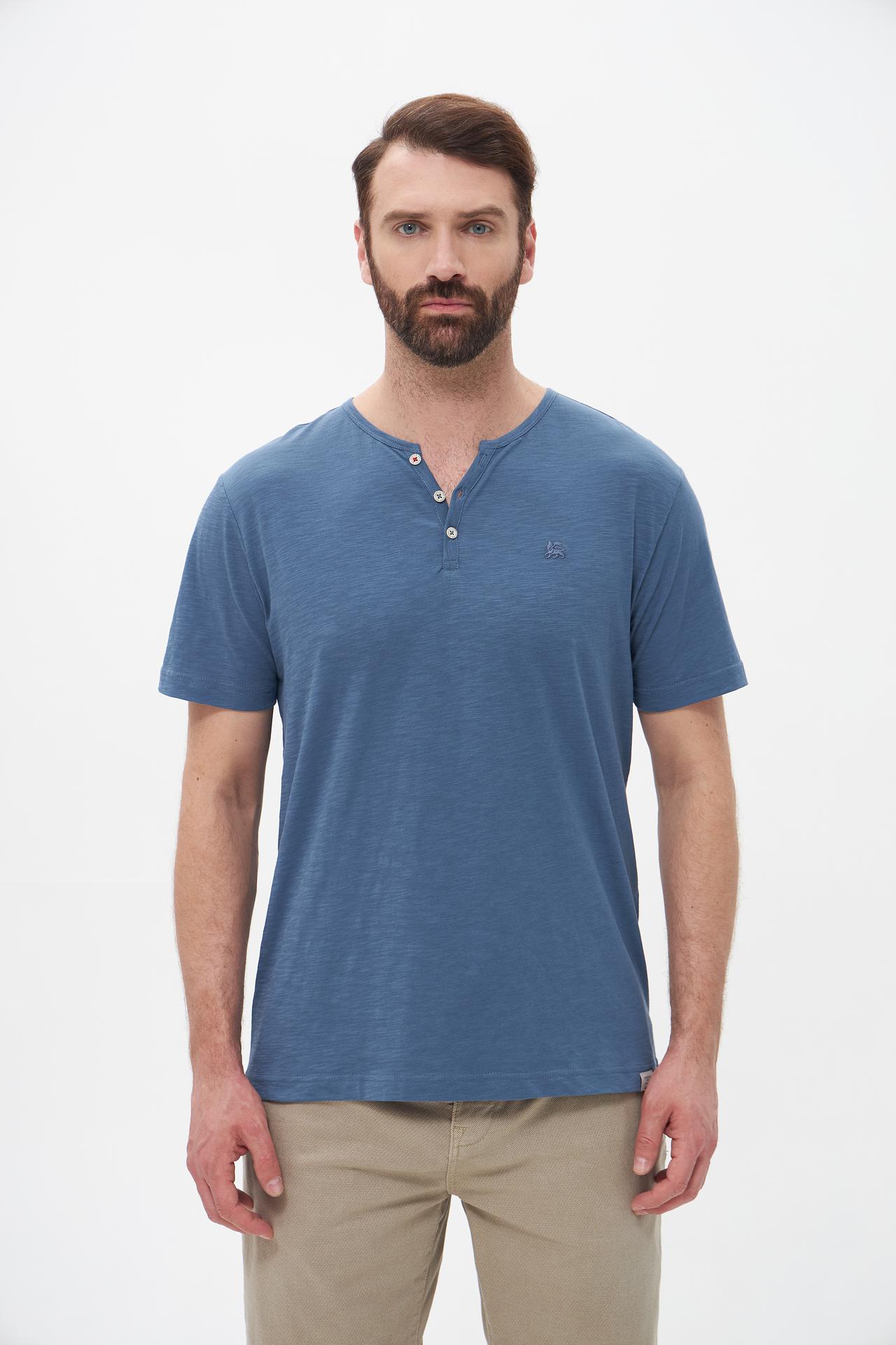 - Детали: Застежка на пуговицы придает футболке оригинальный вид.