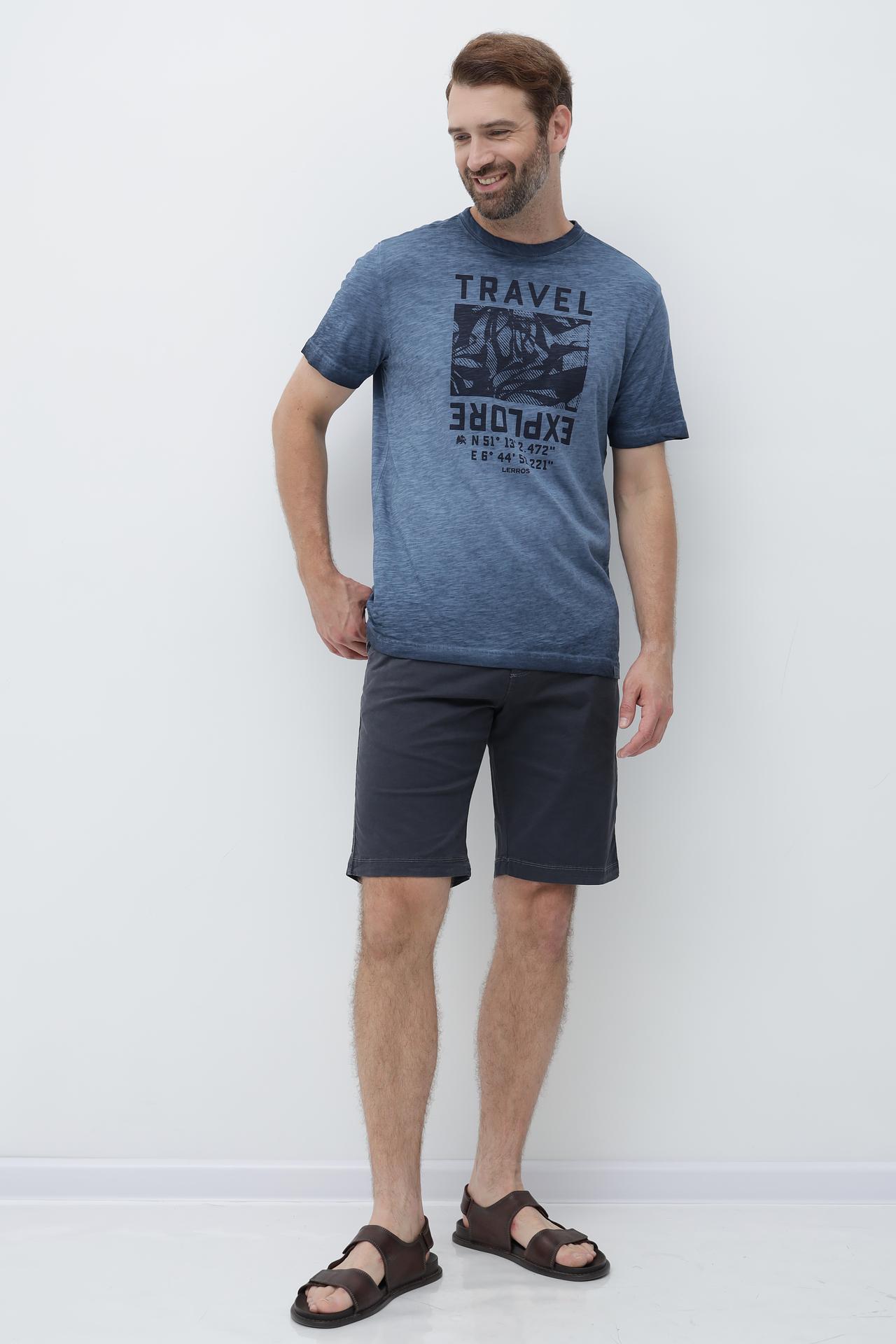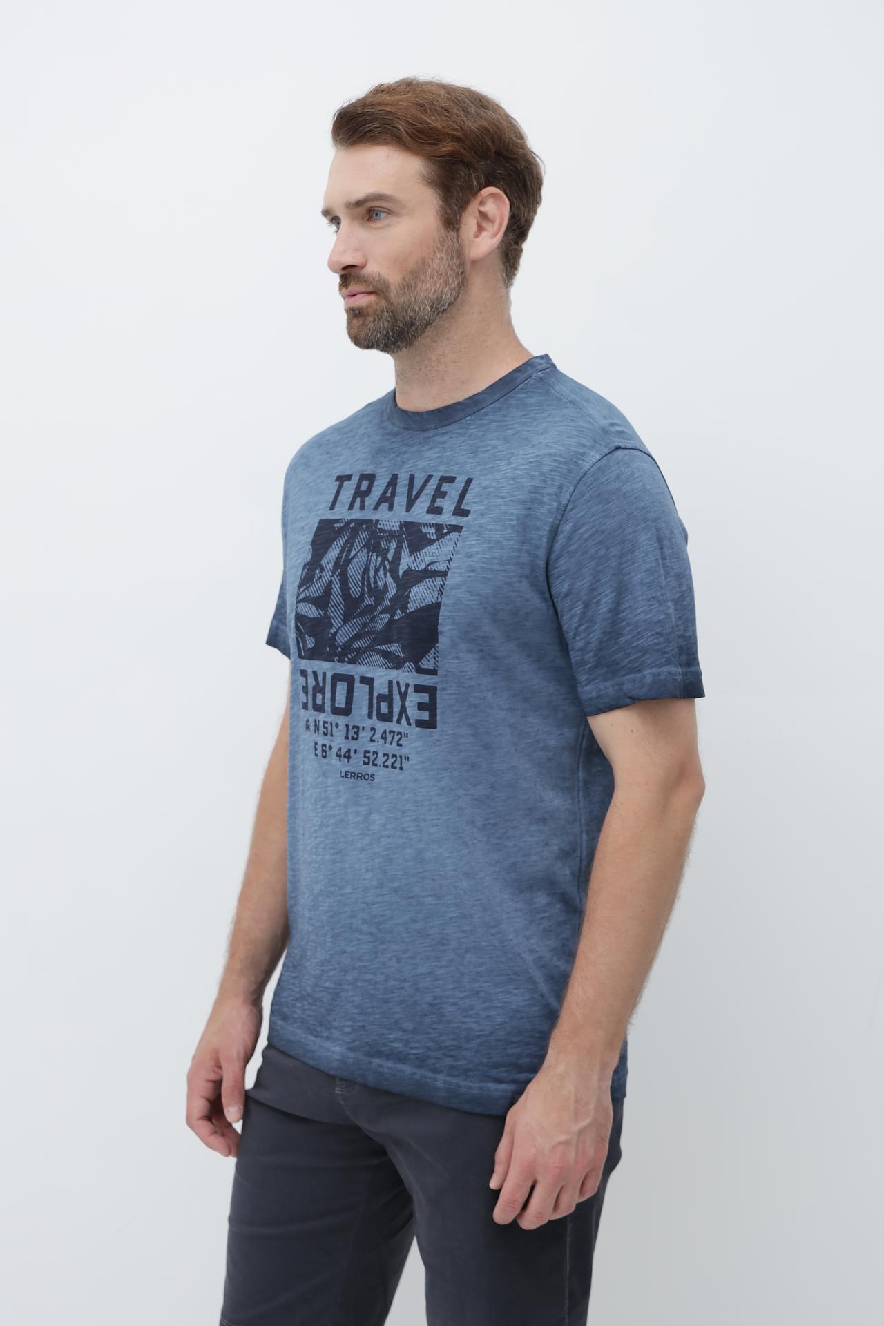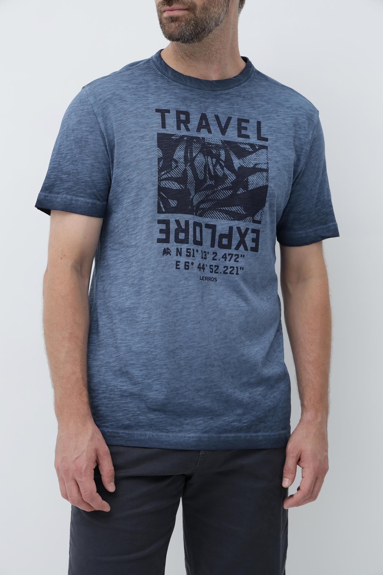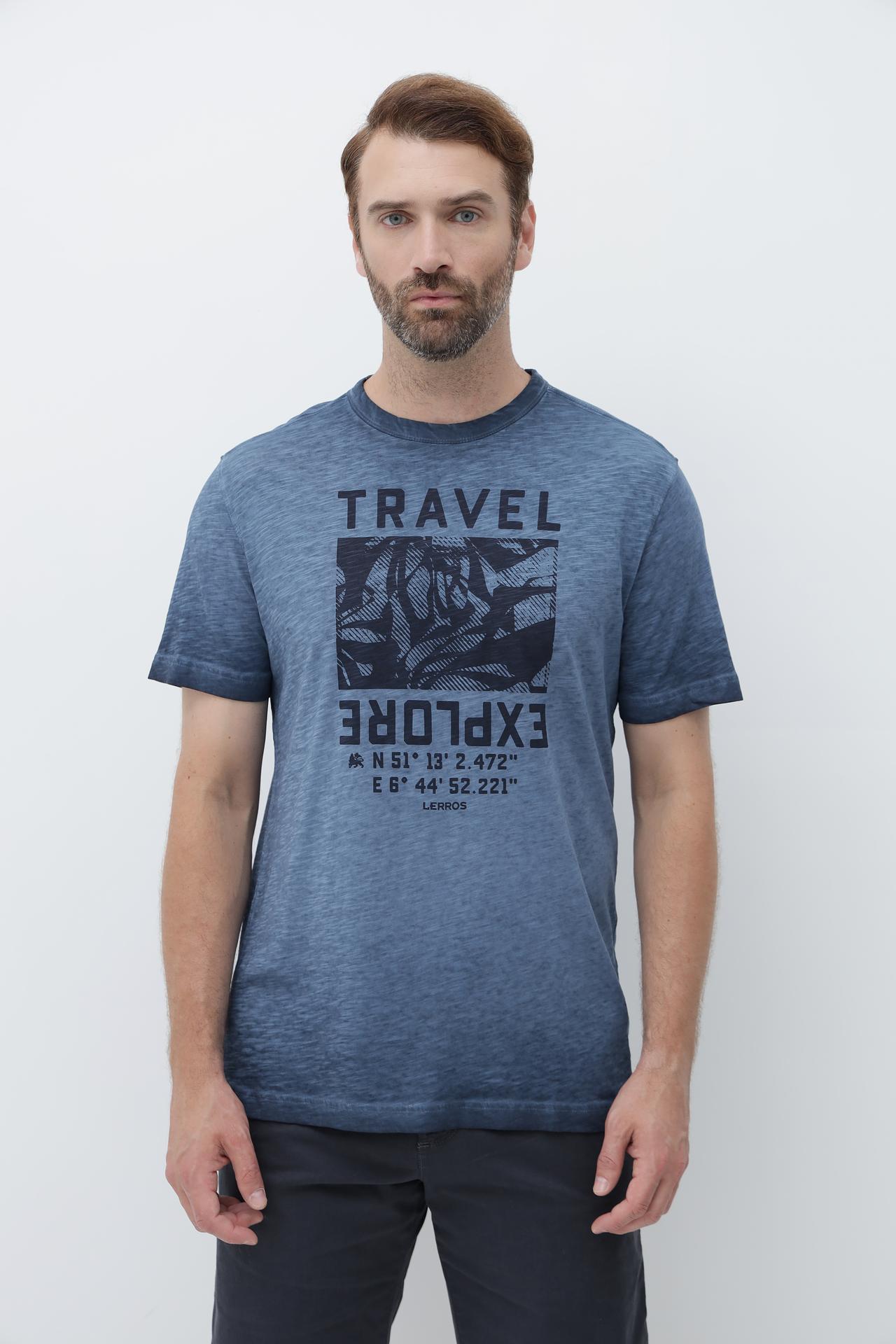 Футболка Lerros синяя с принтом "TRAVEL EXPLORE"