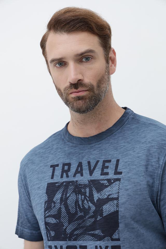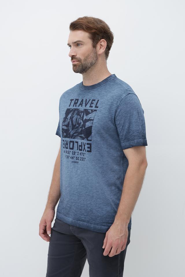Мужская футболка Lerros голубого цвета с оригинальным принтом "Travel". Изготовлена из 100% хлопка, обеспечивающего комфорт и воздухопроницаемость. Отличный выбор для повседневного образа. Состав: хлопок 100%