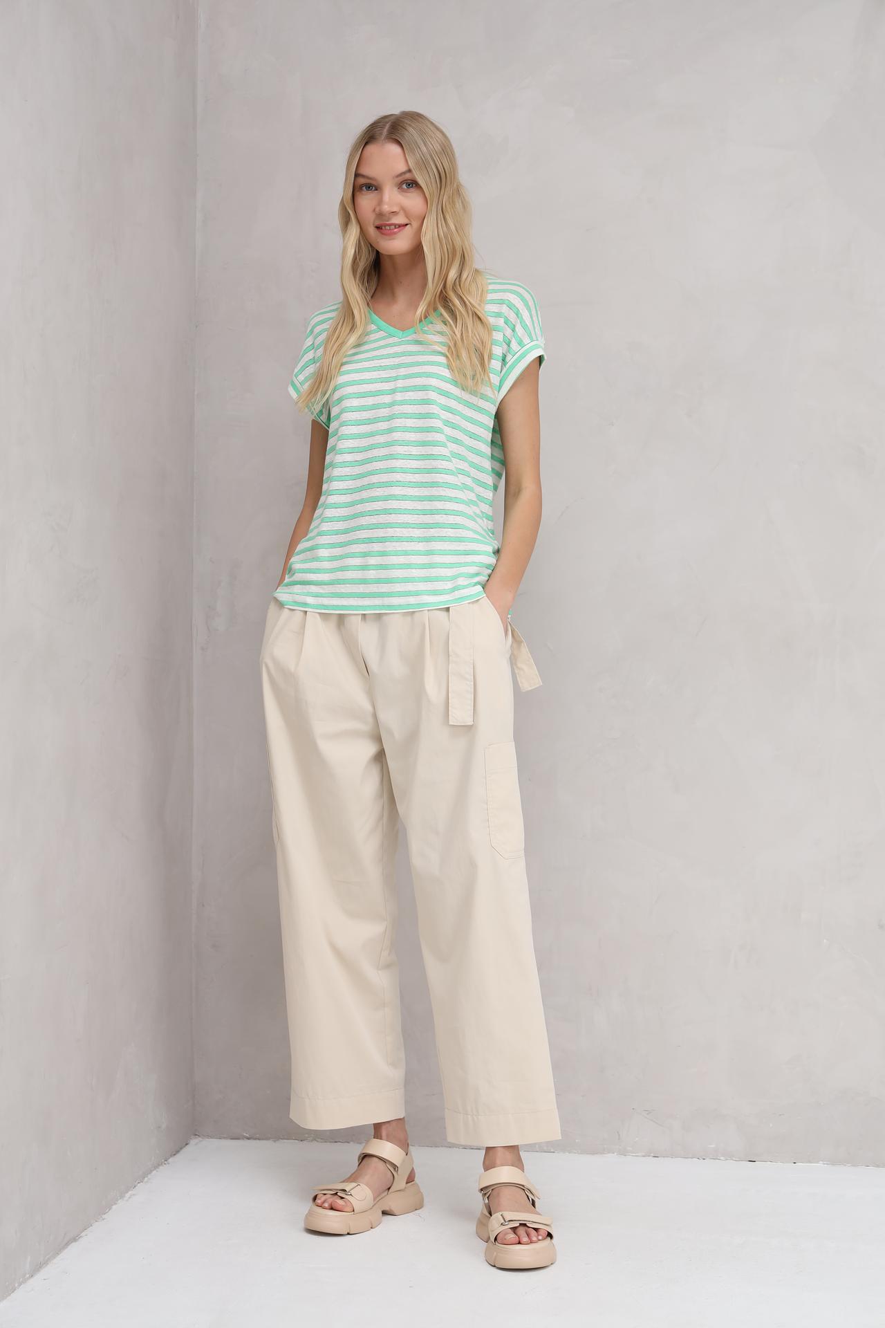 Эта футболка в полоску добавит вашему образу непринужденной элегантности. Футболка идеально сочетается с джинсами, шортами или юбками, создавая стильные и расслабленные образы.