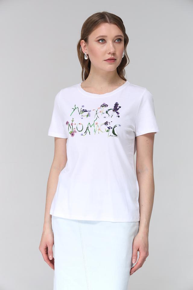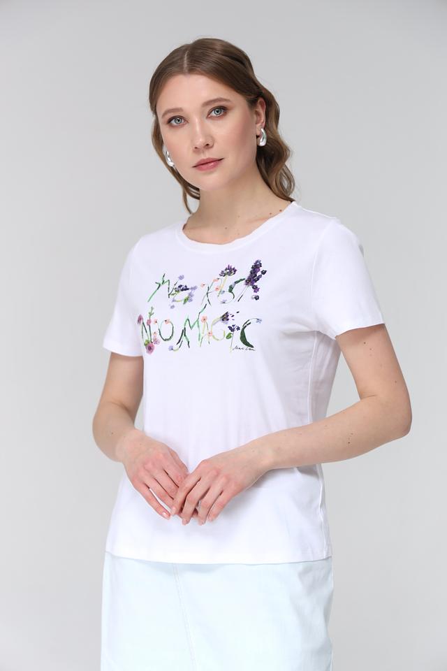 Белая футболка Marc Cain с ярким цветочным принтом добавит легкости и свежести вашему образу. Изготовлена из 100% хлопка, обеспечивая комфорт и воздухопроницаемость. Состав: хлопок 100%