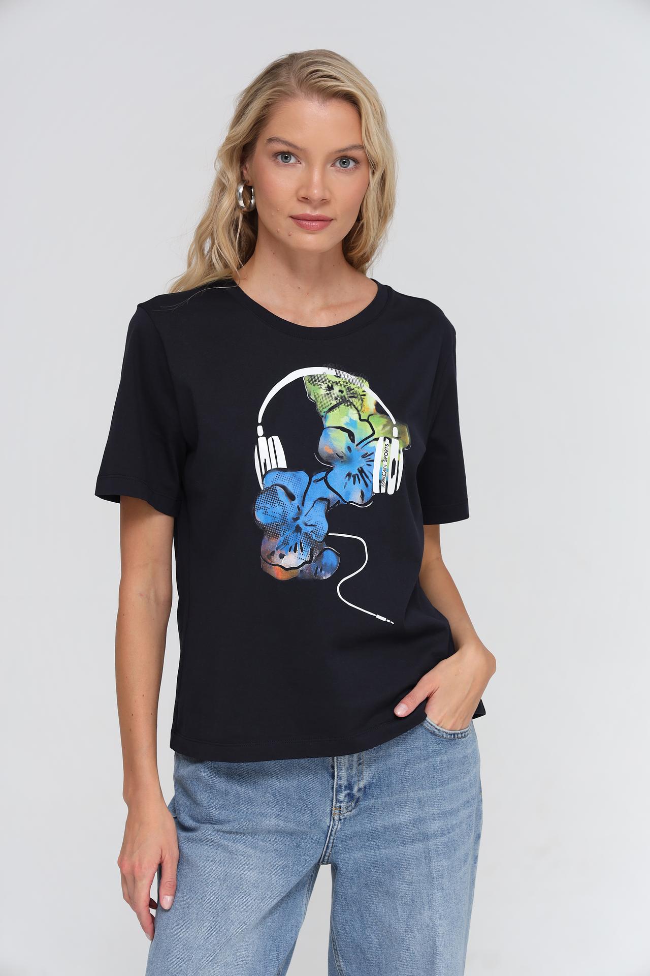 Футболка Marc Cain с принтом "Наушники и цветы"