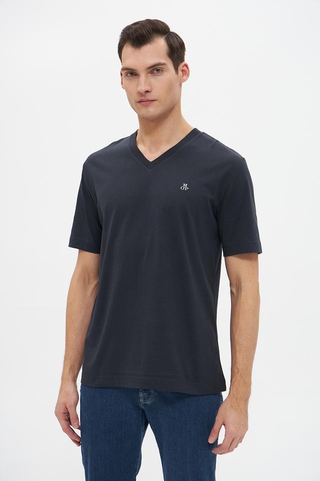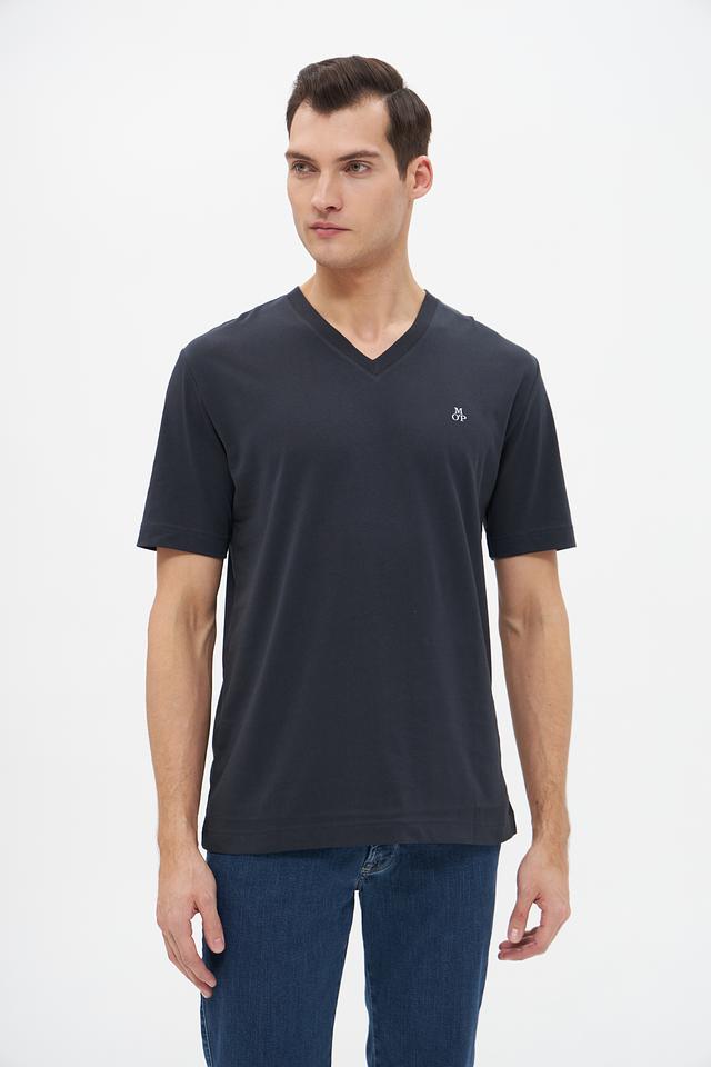 Мужская футболка Marc O Polo тёмно-синего цвета с V-образным вырезом. Классический крой и 100% хлопковый состав обеспечивают комфорт и удобство в носке. Состав: хлопок 100%