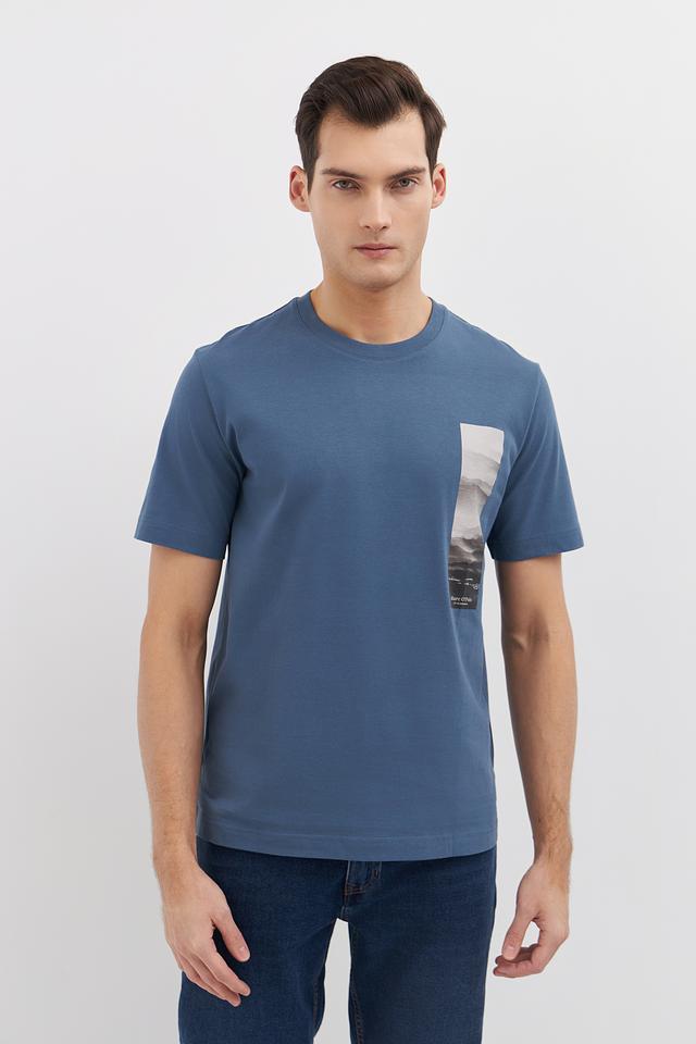 Мужская футболка Marc O Polo голубого цвета с оригинальным принтом на груди. Изготовлена из 100% хлопка, обеспечивающего комфорт и воздухопроницаемость. Стильный и лаконичный дизайн. Состав: хлопок 100%