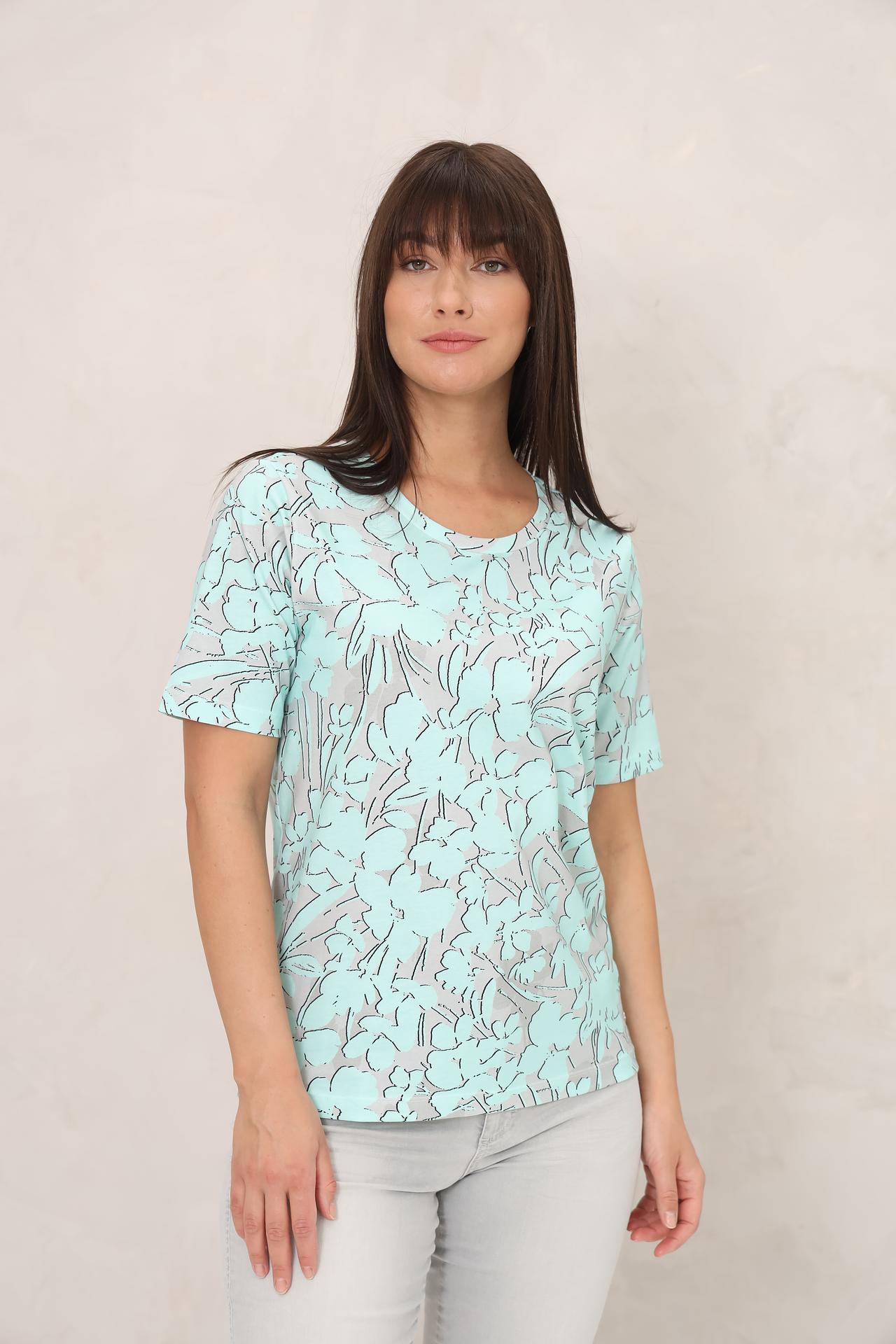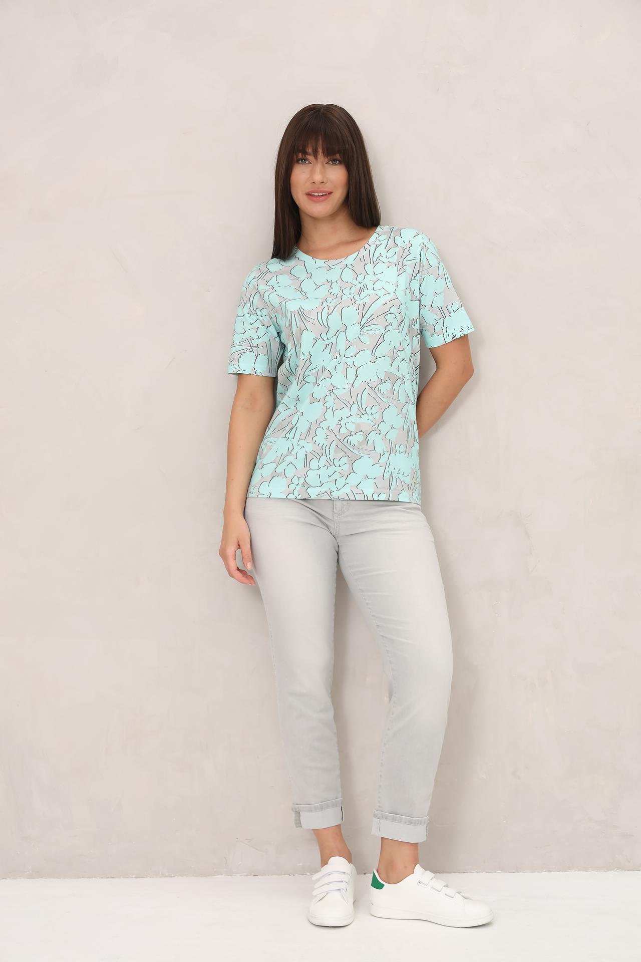 Стильная футболка от Monari с оригинальным принтом станет ярким акцентом в вашем гардеробе. Изготовлена из 100% хлопка, обеспечивая мягкость и комфорт в течение всего дня. Прекрасно подойдет для создания разнообразных образов в стиле casual.