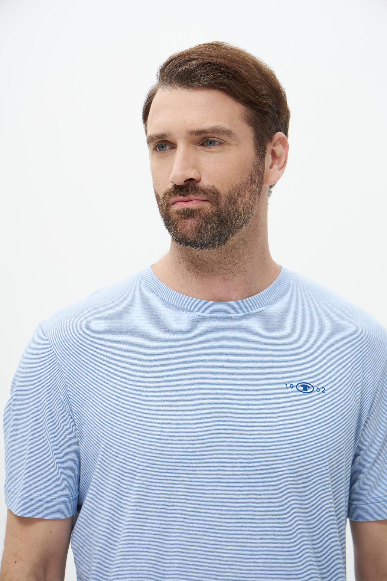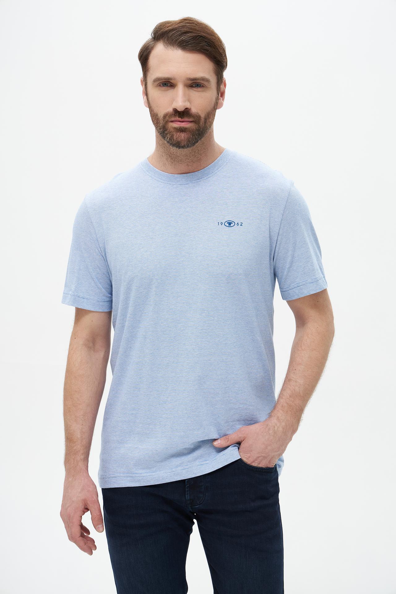 Футболка мужская Tom Tailor, голубая, с вышивкой логотипа