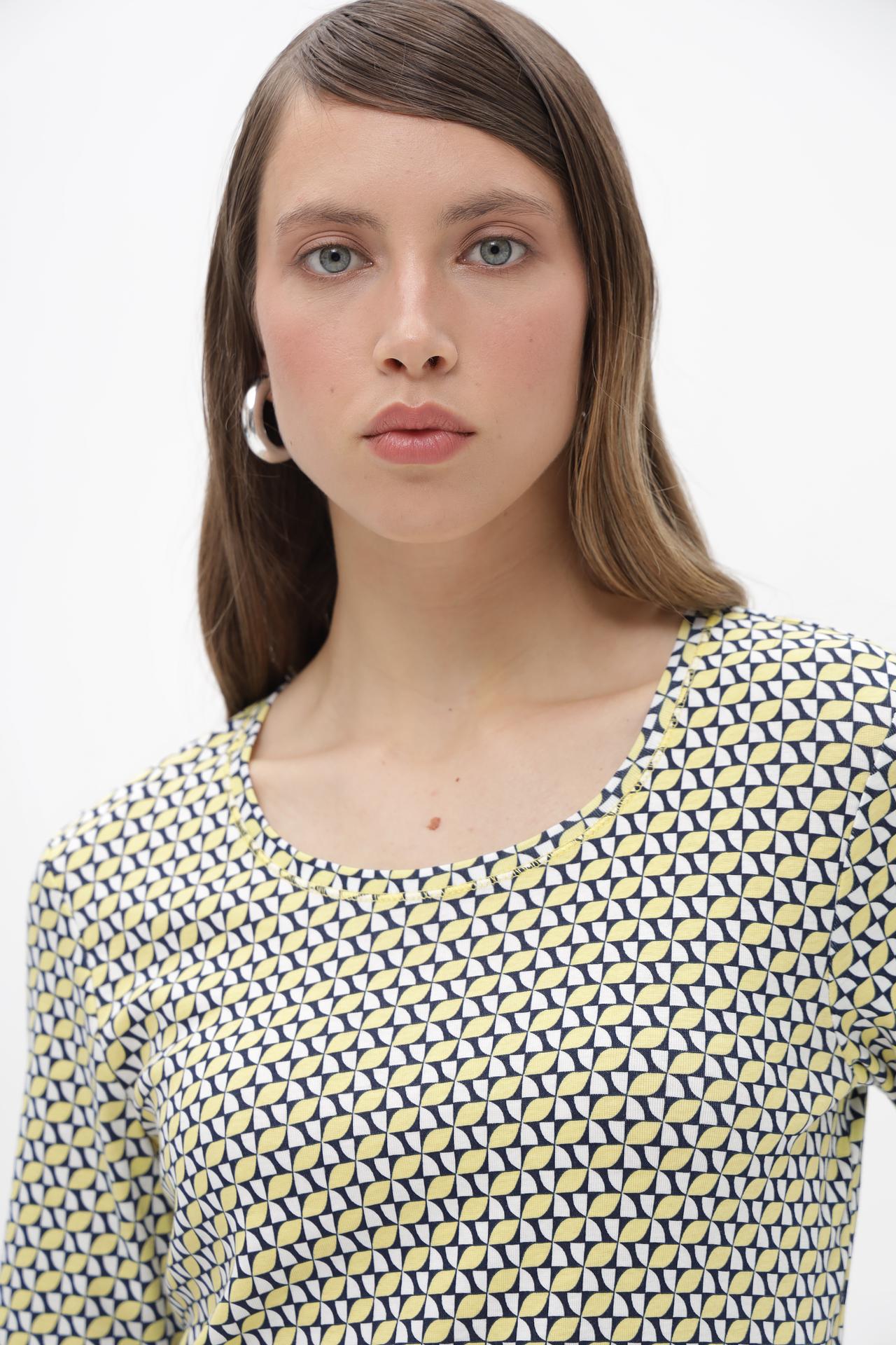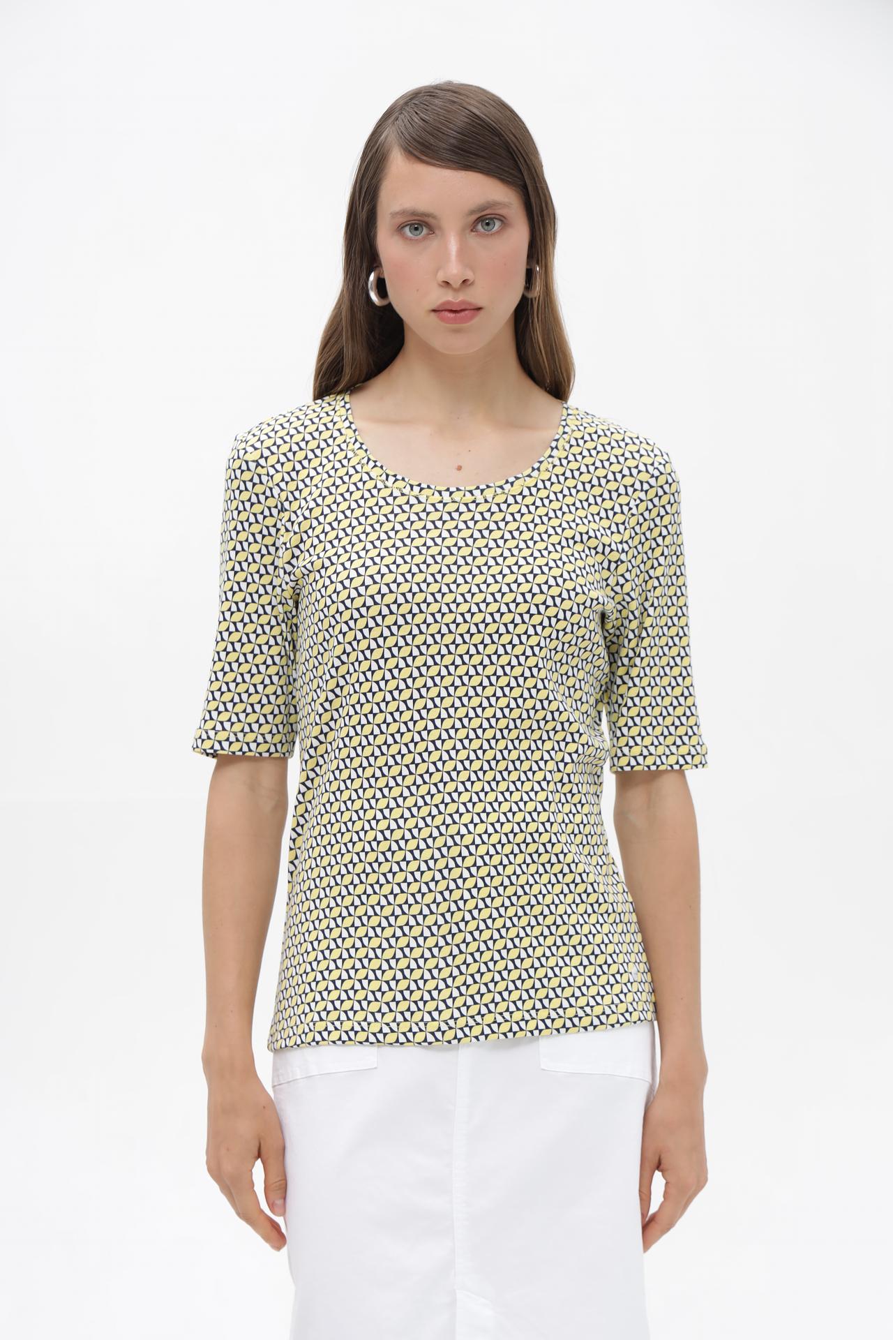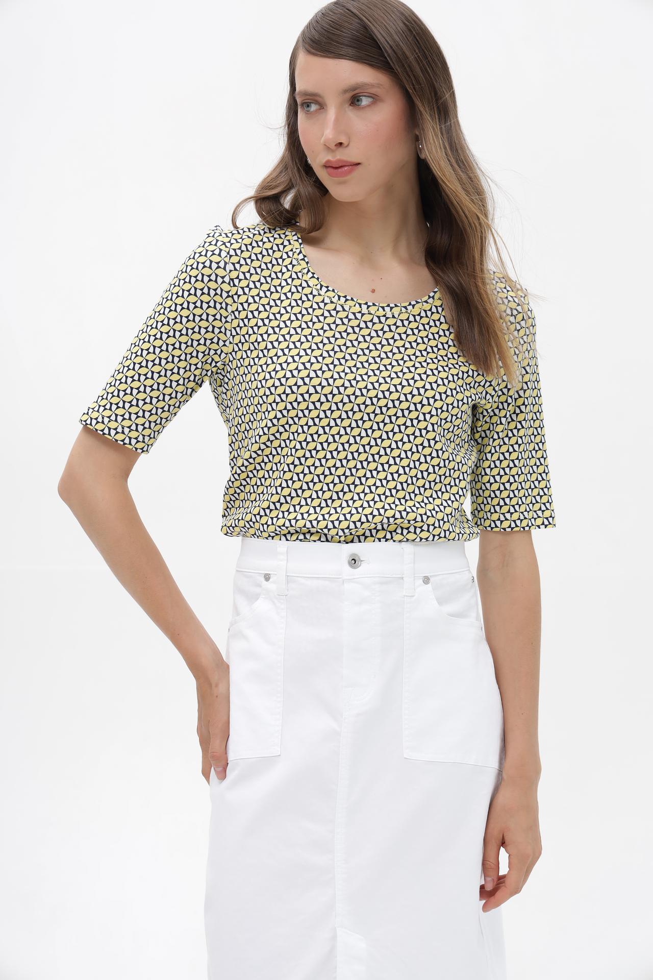 Стильная футболка Olsen, выполненная из 100% хлопка, станет прекрасным дополнением вашего гардероба. Приятная к телу ткань обеспечит комфорт в течение всего дня. Оригинальный принт добавит образу изюминку. Эта футболка - идеальный выбор для создания как повседневных, так и более элегантных образов.