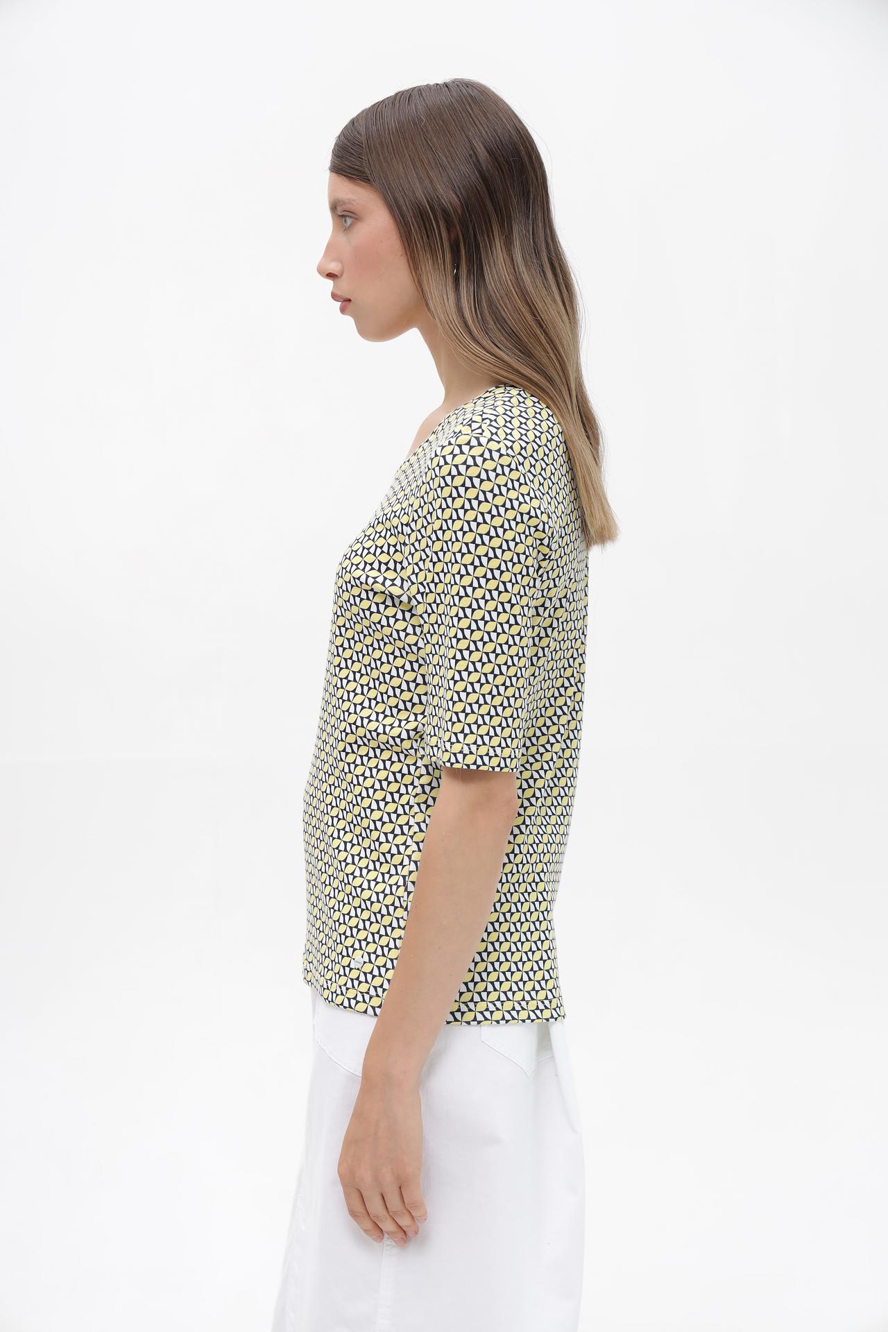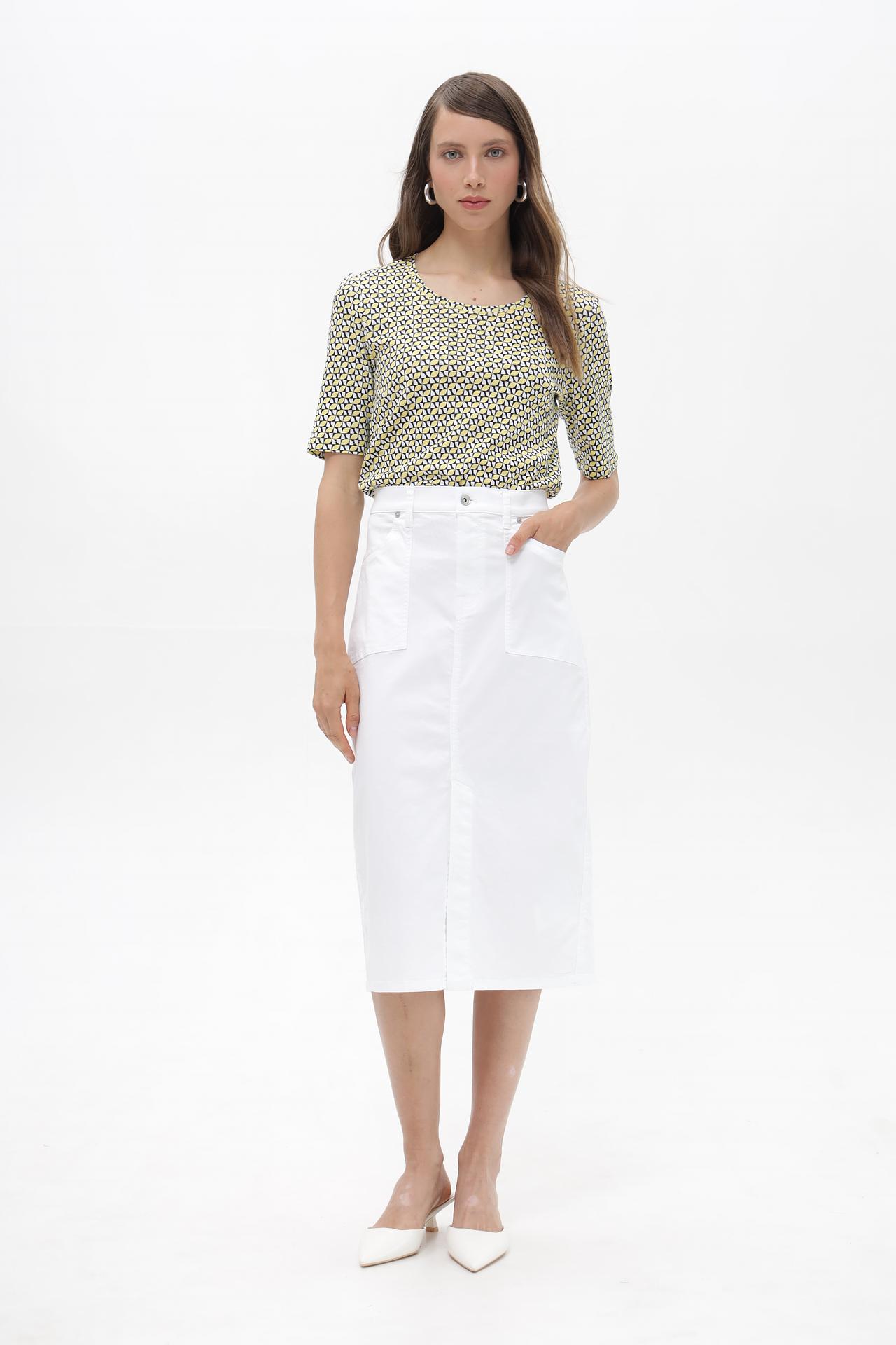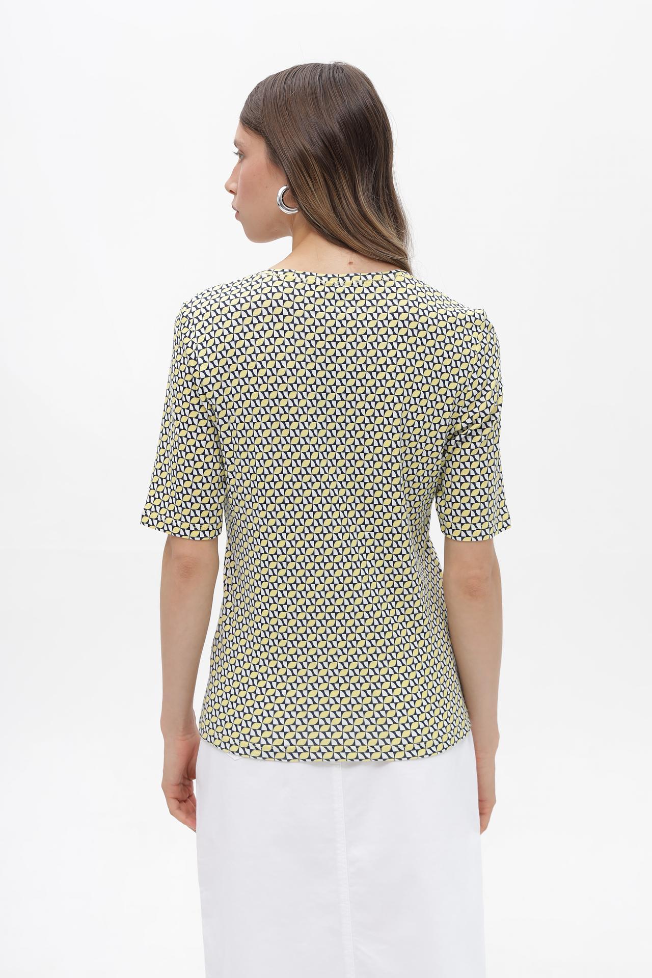 Стильная футболка Olsen, выполненная из 100% хлопка, станет прекрасным дополнением вашего гардероба. Приятная к телу ткань обеспечит комфорт в течение всего дня. Оригинальный принт добавит образу изюминку. Эта футболка - идеальный выбор для создания как повседневных, так и более элегантных образов.