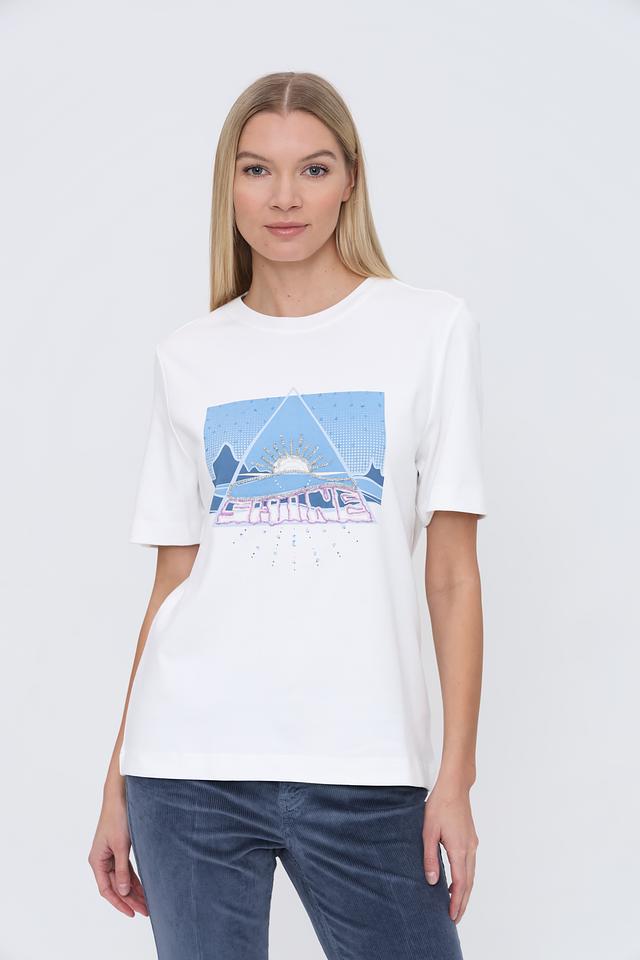 Белая футболка Oui с ярким принтом "Shine" добавит образу оригинальности. Модель из 100% хлопка обеспечивает комфорт и воздухопроницаемость. Состав: хлопок 100%
