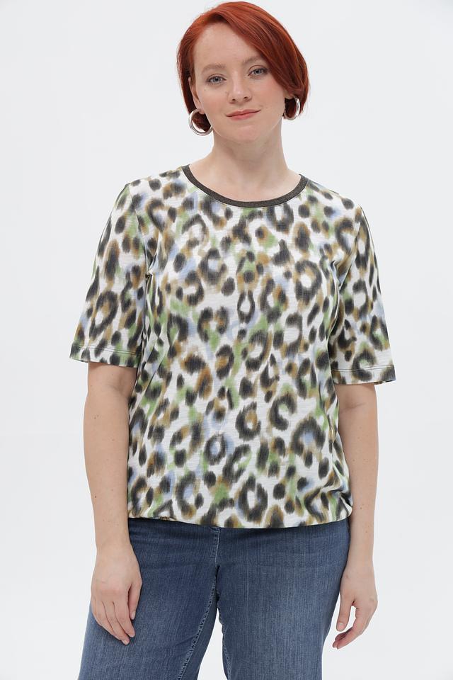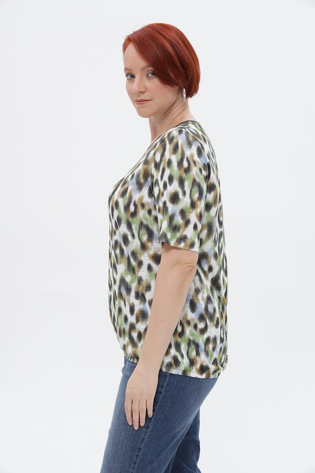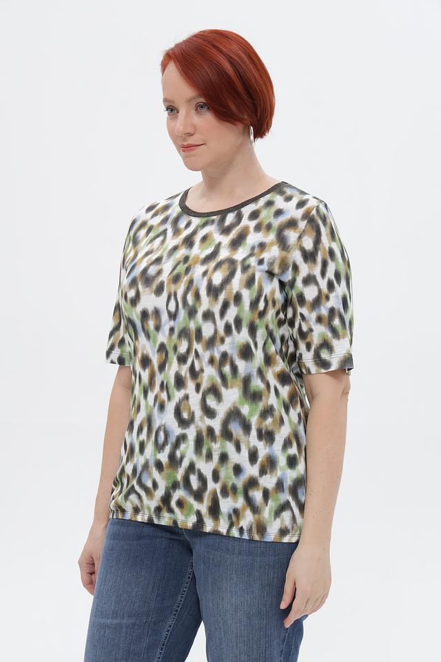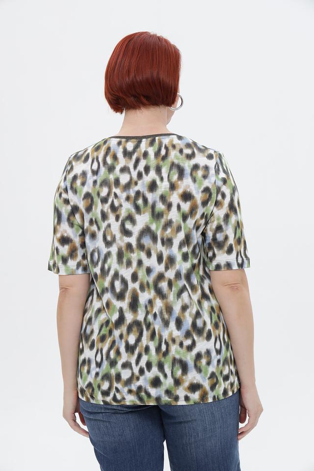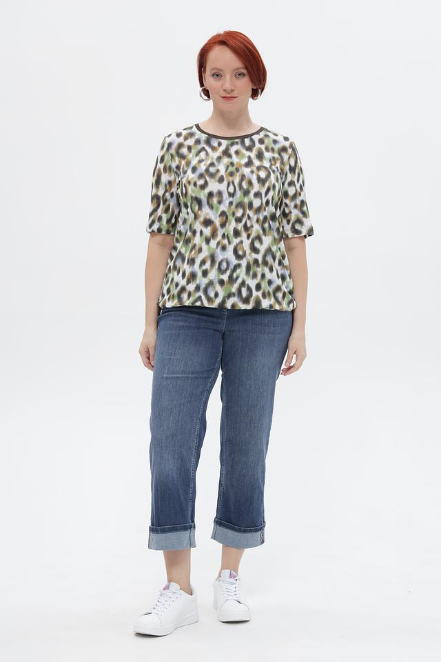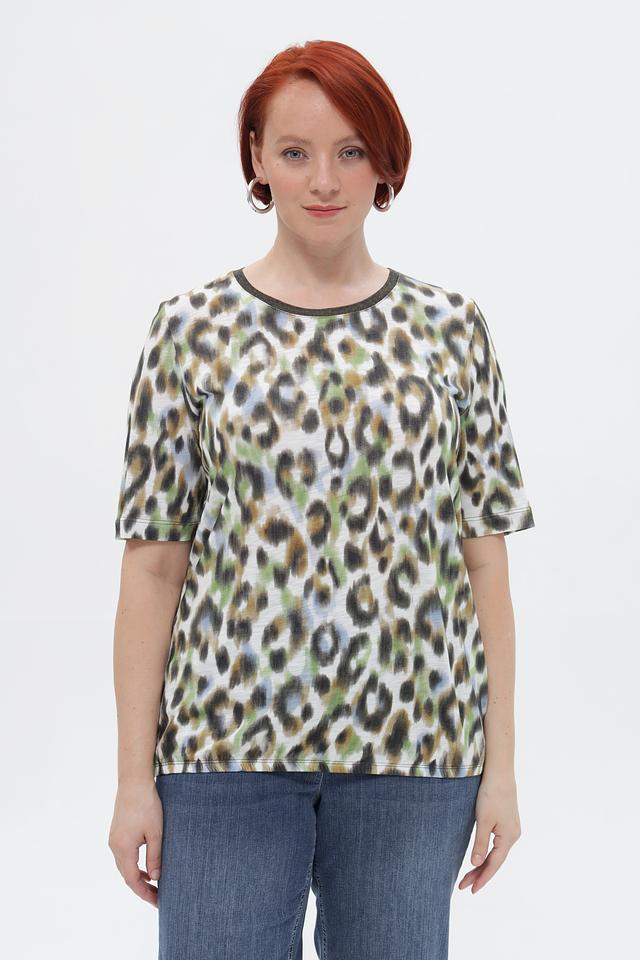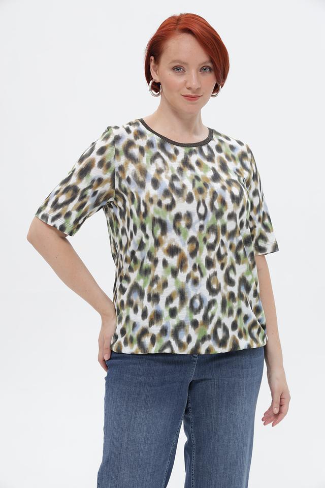 Женская футболка Rabe collection мятного цвета с ярким леопардовым принтом. Модель выполнена из мягкого, приятного к телу сочетания вискозы и хлопка, обеспечивающего комфорт в носке. Состав: вискоза 50%, хлопок 50%