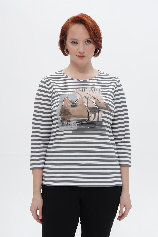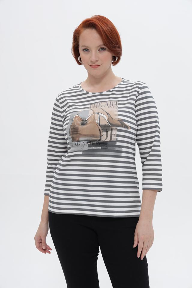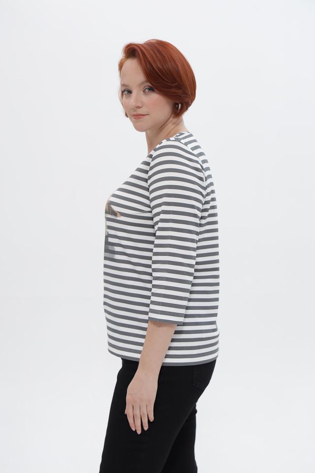 Женская футболка Rabe collection серого цвета с классической полоской и ярким принтом в виде изображения лошади. Модель выполнена из мягкого хлопка с добавлением эластана для комфортной посадки. Состав: хлопок 92%, эластан 8%