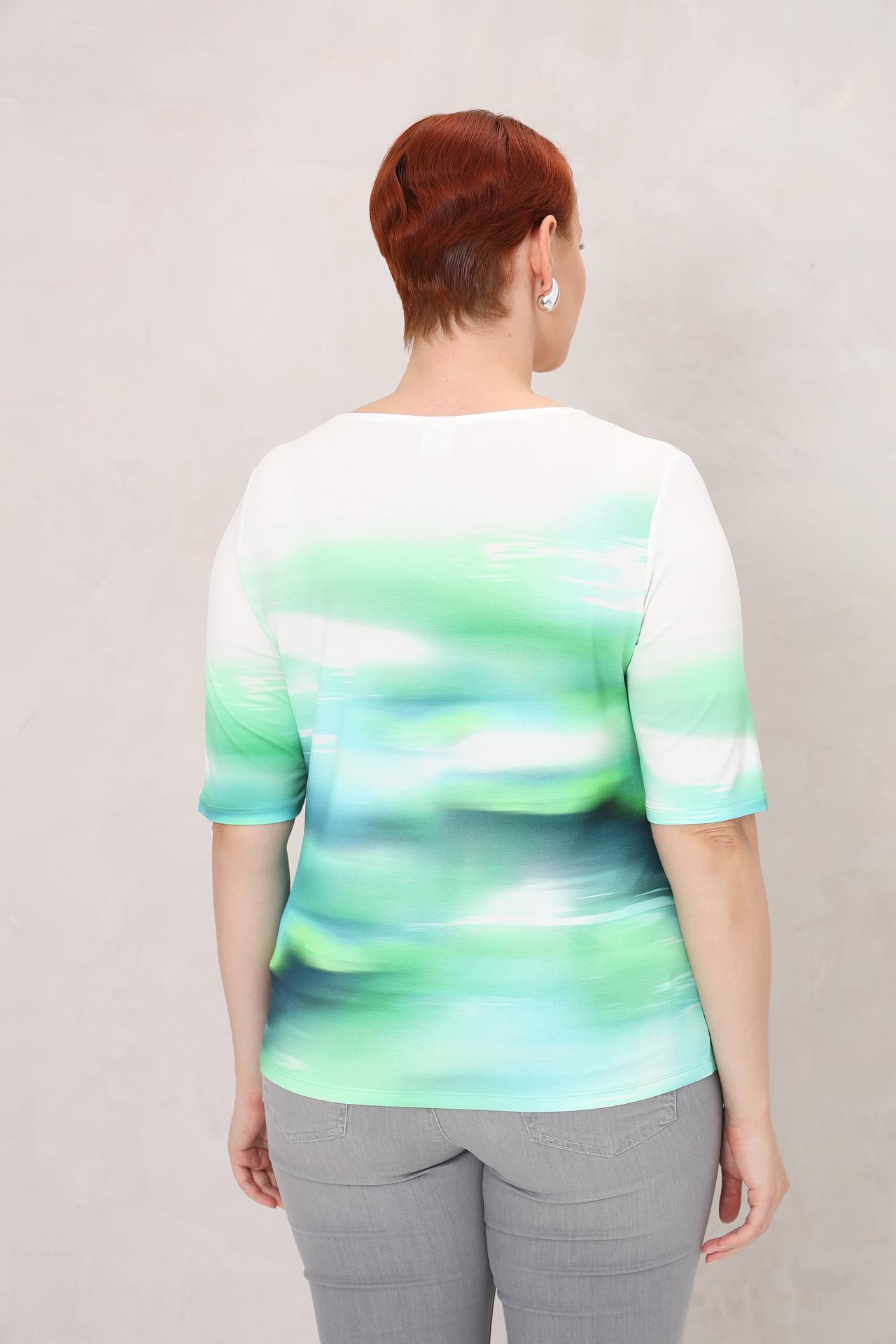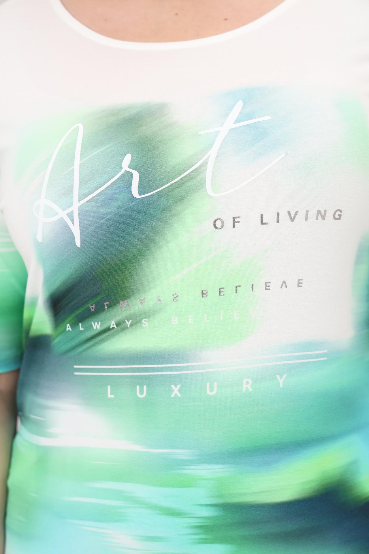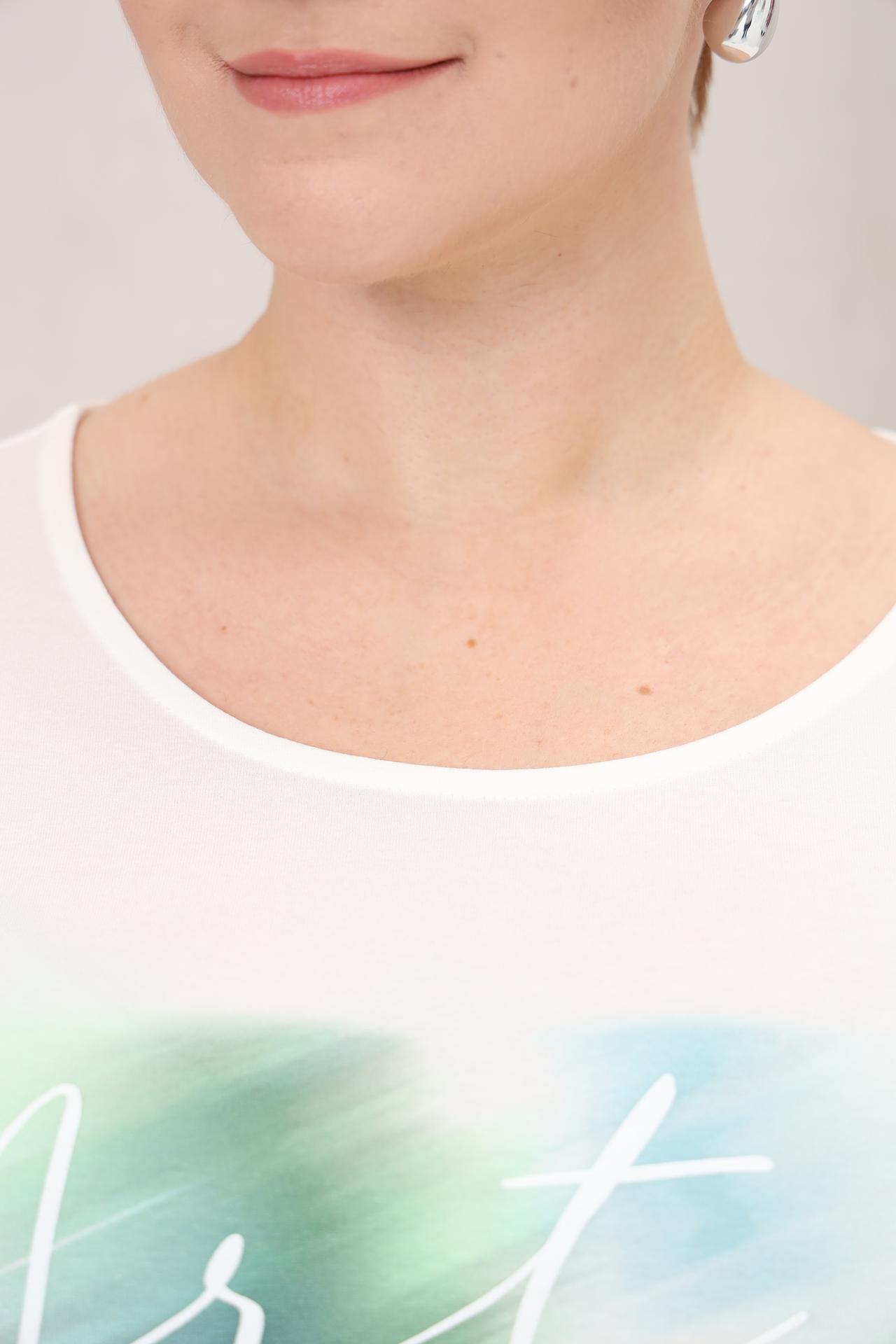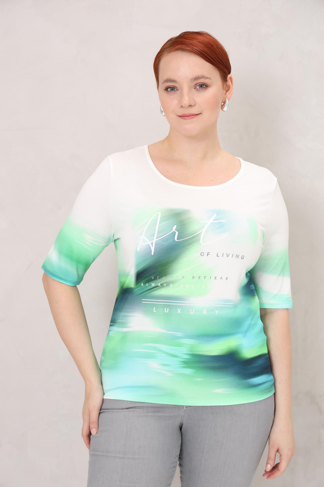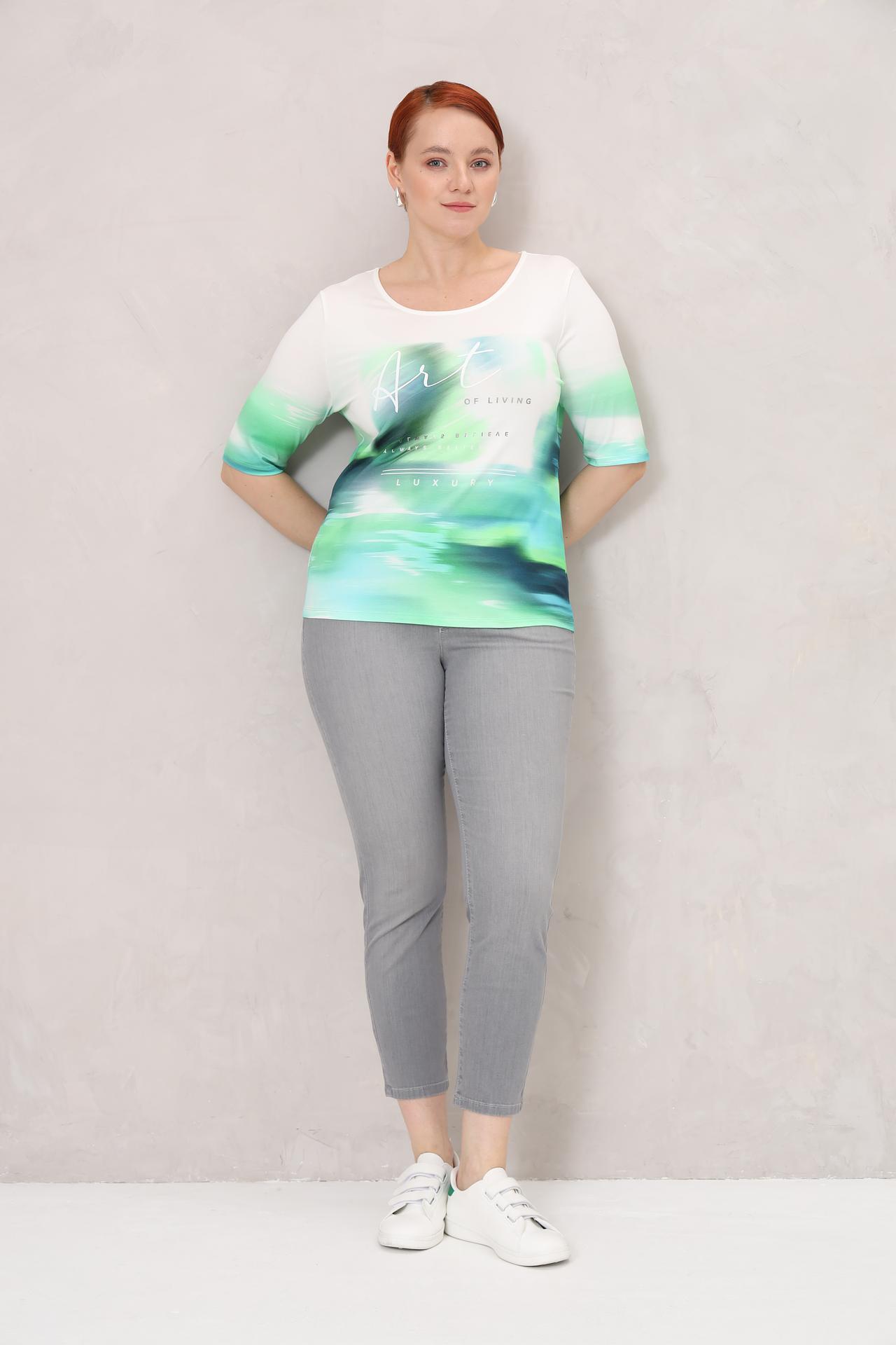 Изысканная футболка от Rabe collection с оригинальным принтом станет ярким акцентом в вашем гардеробе. Мягкая и приятная к телу вискоза в сочетании с эластаном обеспечивает комфорт и свободу движений. Эта стильная футболка идеально подойдет для создания неповторимых образов в стиле casual.