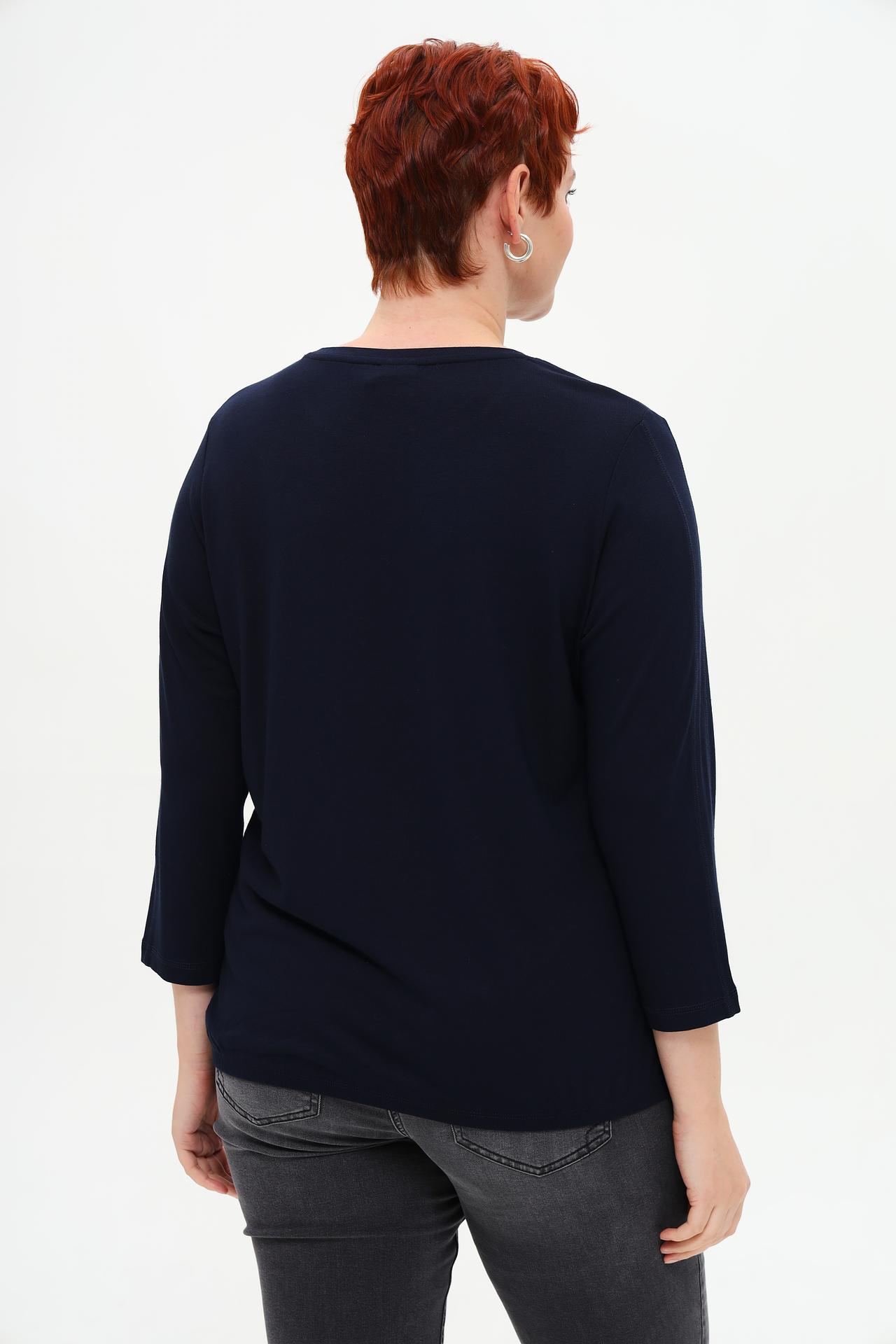 - Дизайн: Классический крой с круглым вырезом горловины и рукавом 3/4, который подходит для разных типов фигур. Футболка имеет привлекательный принт.
