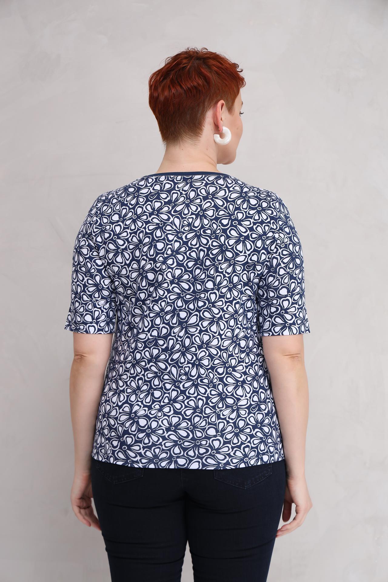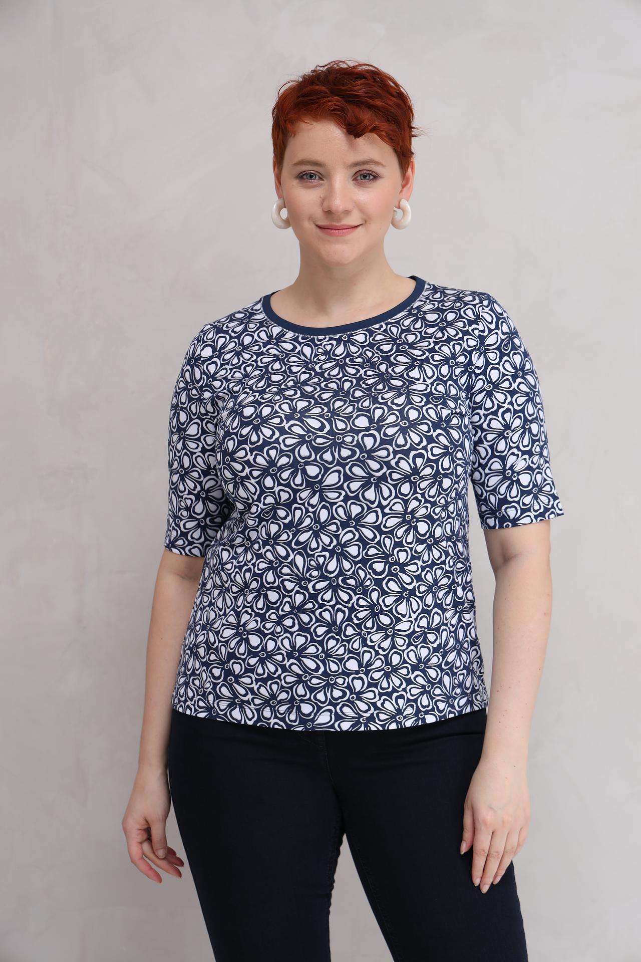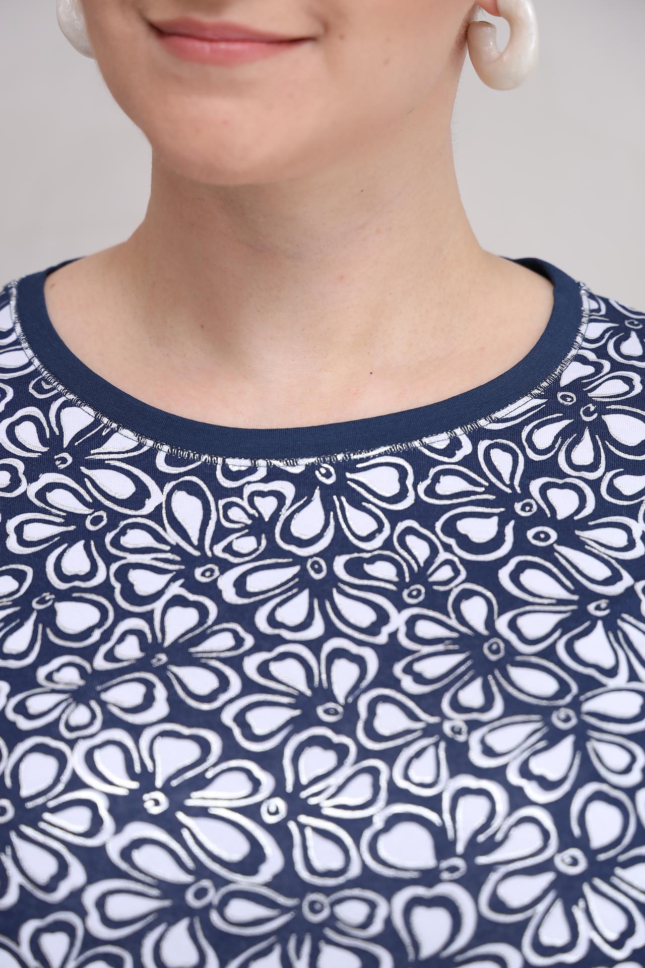 Универсальная футболка с коротким рукавом и круглым вырезом горловины, который обеспечивает удобную посадку и подходит для любого типа фигуры. Стильный цветочный принт добавляет изделию женственности и оригинальности, делая его заметным.