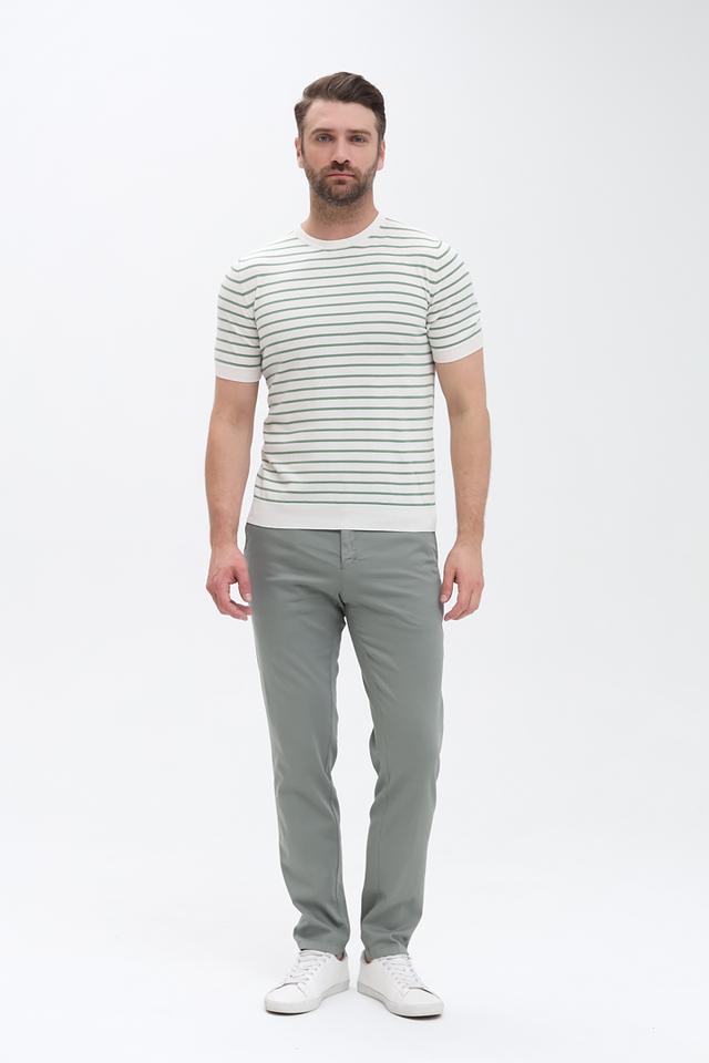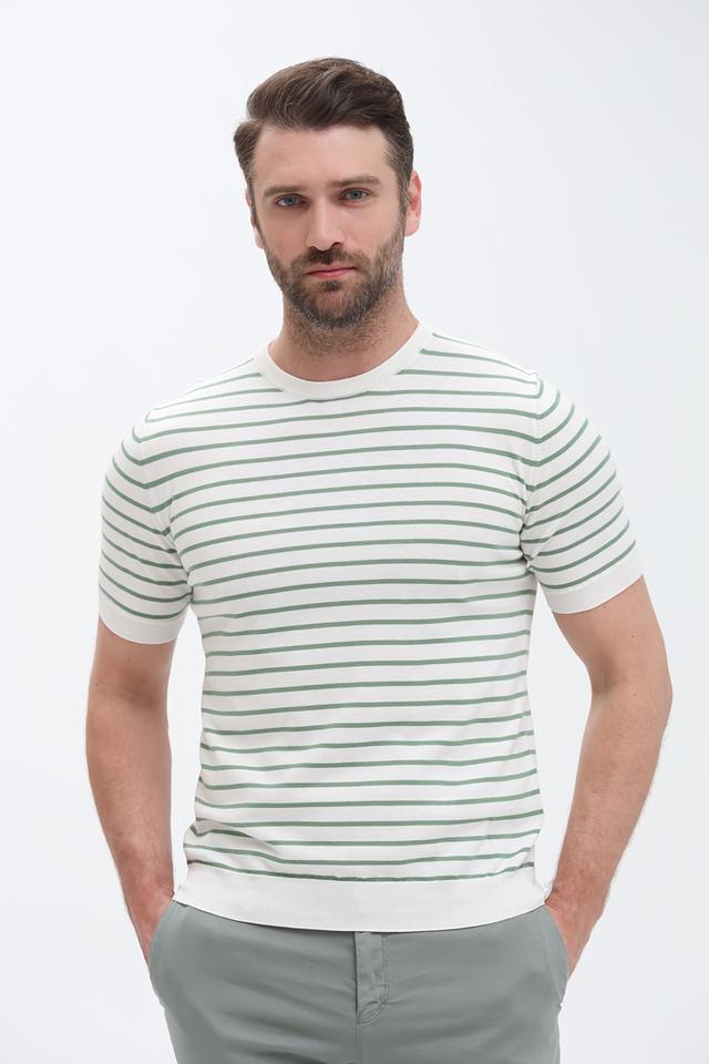 Мужская футболка Radi Perugia белого цвета с классическим горизонтальным рисунком в зелёную полоску. Изготовлена из 100% хлопка, обеспечивающего комфорт и воздухопроницаемость. Отличный выбор для повседневного образа. Состав: хлопок 100%