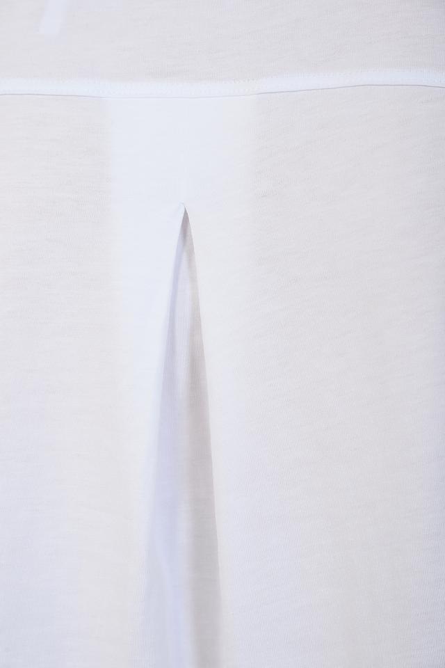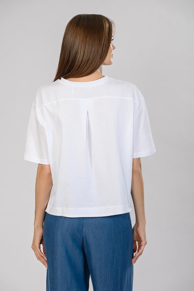 Футболка имеет свободный крой, который не сковывает движения, и короткие рукава, идеально подходящие для теплой погоды. Белый цвет делает ее универсальной, позволяя легко сочетать с различными элементами одежды.
