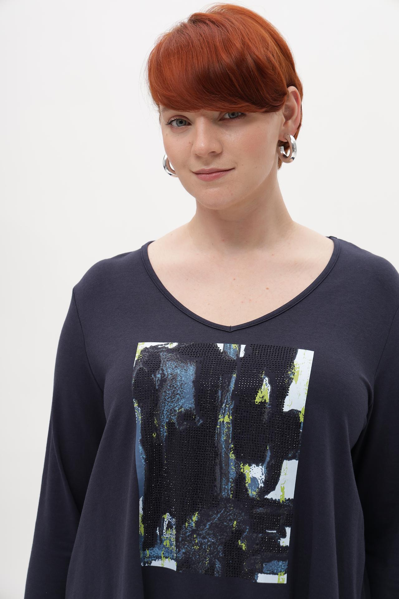 - Дизайн: стильный тёмно-синий цвет и оригинальный принт со стразами - добавляет изюминку вашему образу.