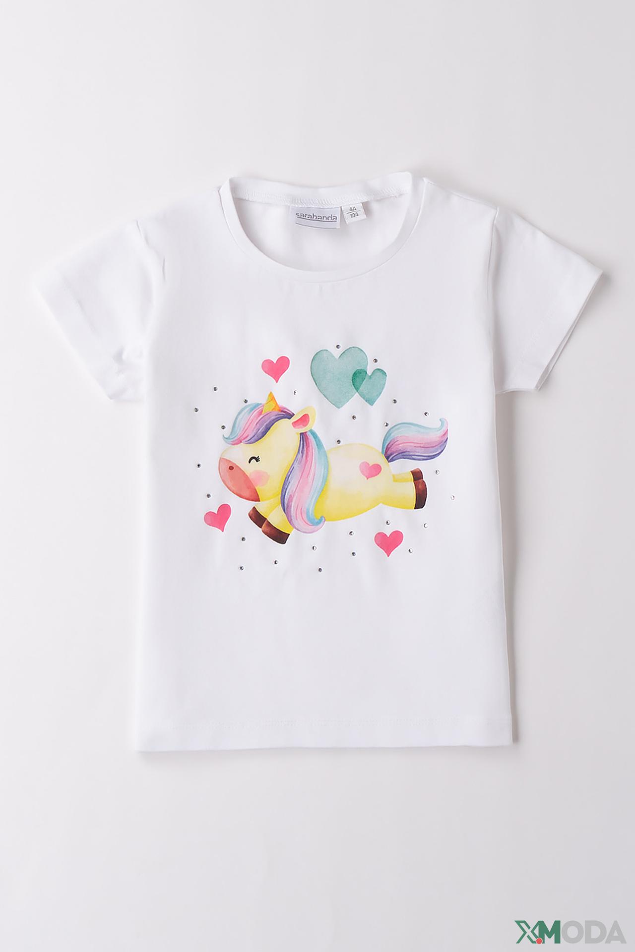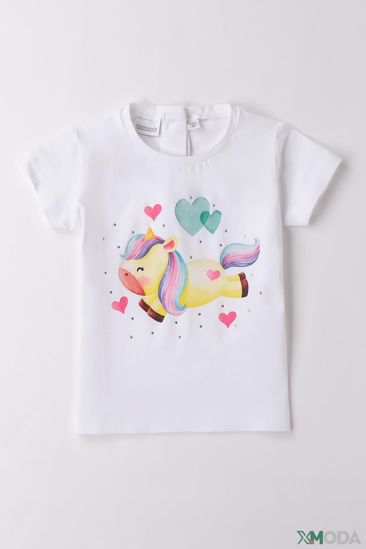 Футболка Sarabanda, белая с единорогом, сердцами и стразами