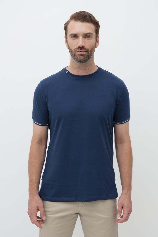 Мужская футболка Sea Barrier синего цвета с контрастной полоской на рукавах. Изготовлена из 100% хлопка, обеспечивающего комфорт и воздухопроницаемость. Отличный выбор для повседневной носки. Состав: хлопок 100%