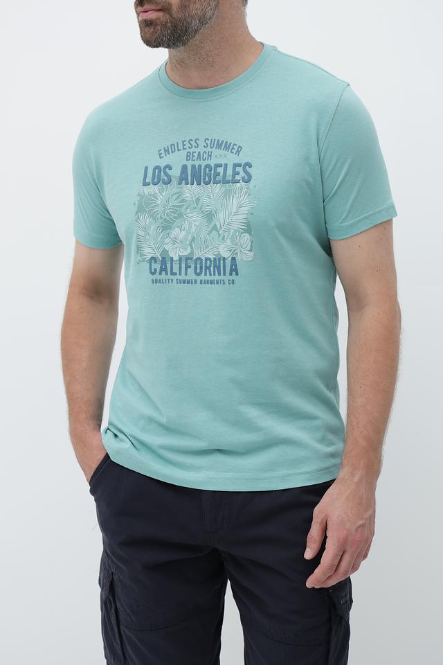 Мятная футболка Sea Barrier с ярким принтом "Los Angeles". Изготовлена из 100% хлопка, обеспечивающего комфорт и воздухопроницаемость. Отличный выбор для повседневного образа. Состав: хлопок 100%