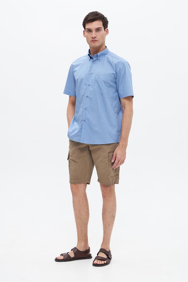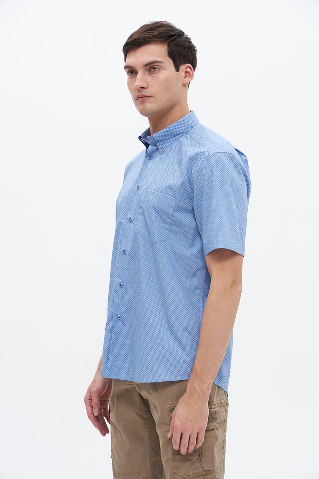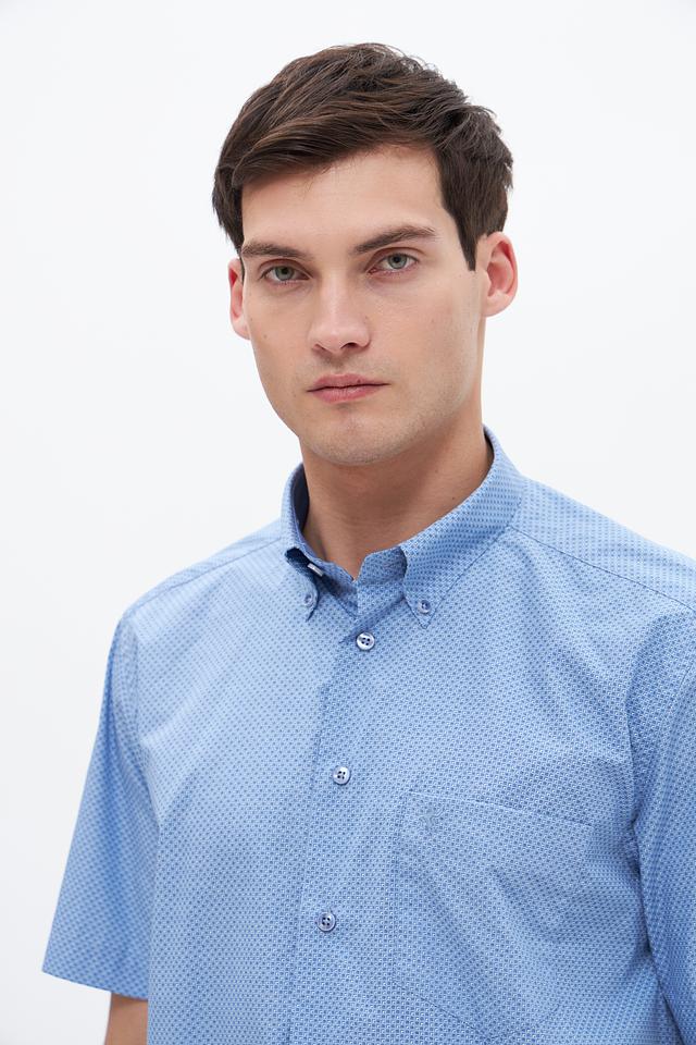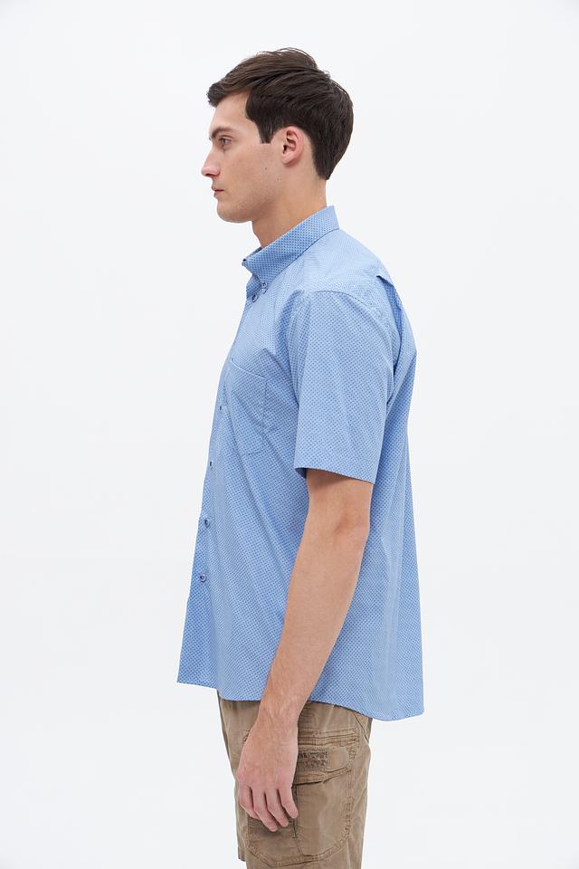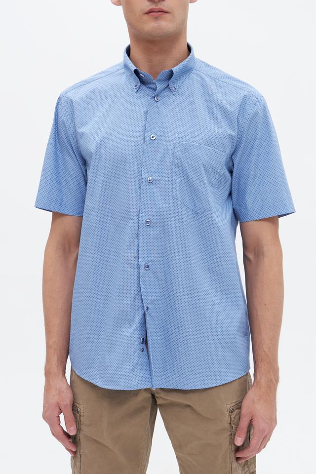 Мужская рубашка Sea Barrier голубого цвета с коротким рукавом, выполнена из 100% хлопка и имеет мелкий геометрический рисунок. Отличный выбор для создания повседневного образа. Состав: хлопок 100%