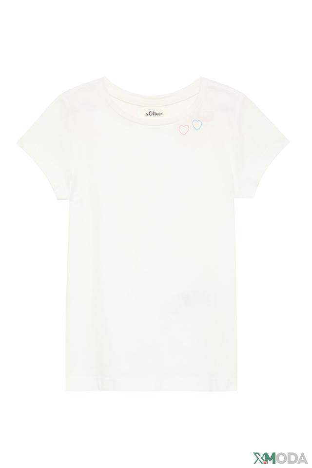Белая футболка s.Oliver для девочки с нежным принтом в виде сердечек. Изготовлена из 100% хлопка, обеспечивая комфорт и воздухопроницаемость. Отличный выбор для повседневной носки. Состав: хлопок 100%