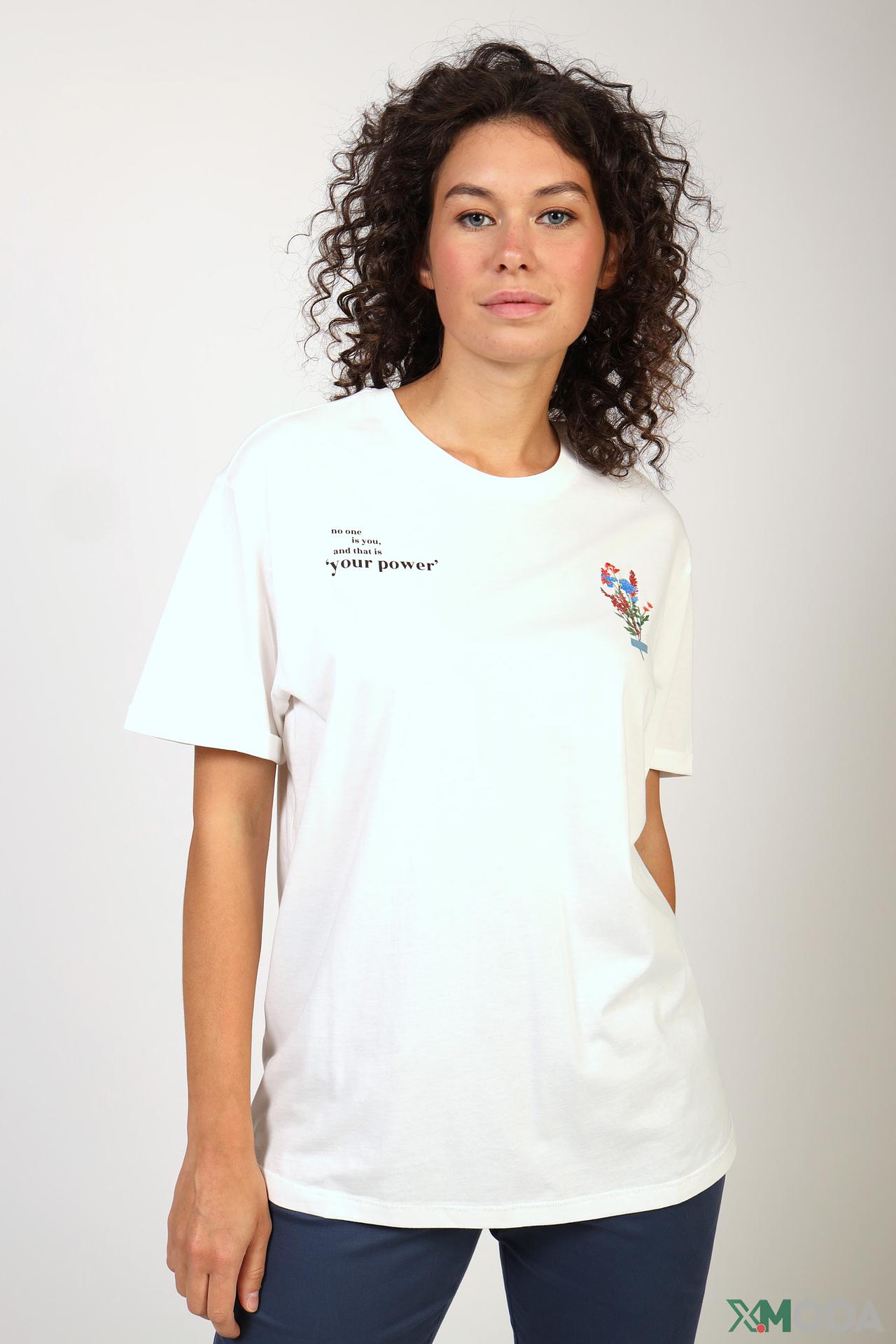 - Декоративная вышивка. Нежный цветочный мотив придает футболке оригинальность и женственность.