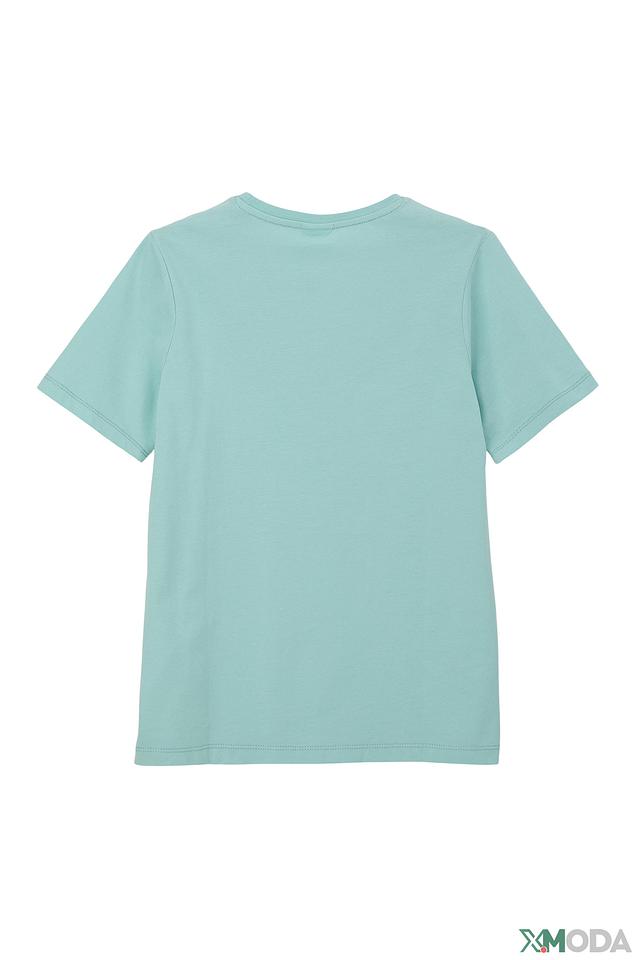 Цвет футболки — нежный оттенок морской волны, который легко сочетается с другими элементами одежды. Эта футболка идеально подходит для повседневной носки, активных игр и прогулок.