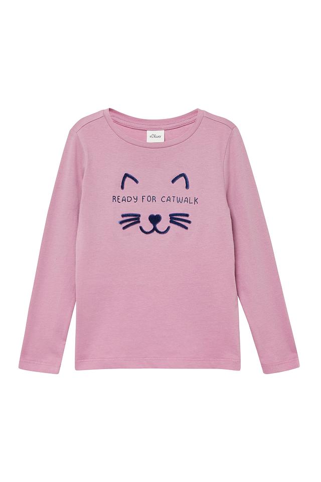 Розовая футболка s.Oliver для девочки с забавным принтом котика. Изготовлена из 100% хлопка, обеспечивающего комфорт и удобство в носке. Отличный выбор для повседневной носки. Состав: хлопок 100%