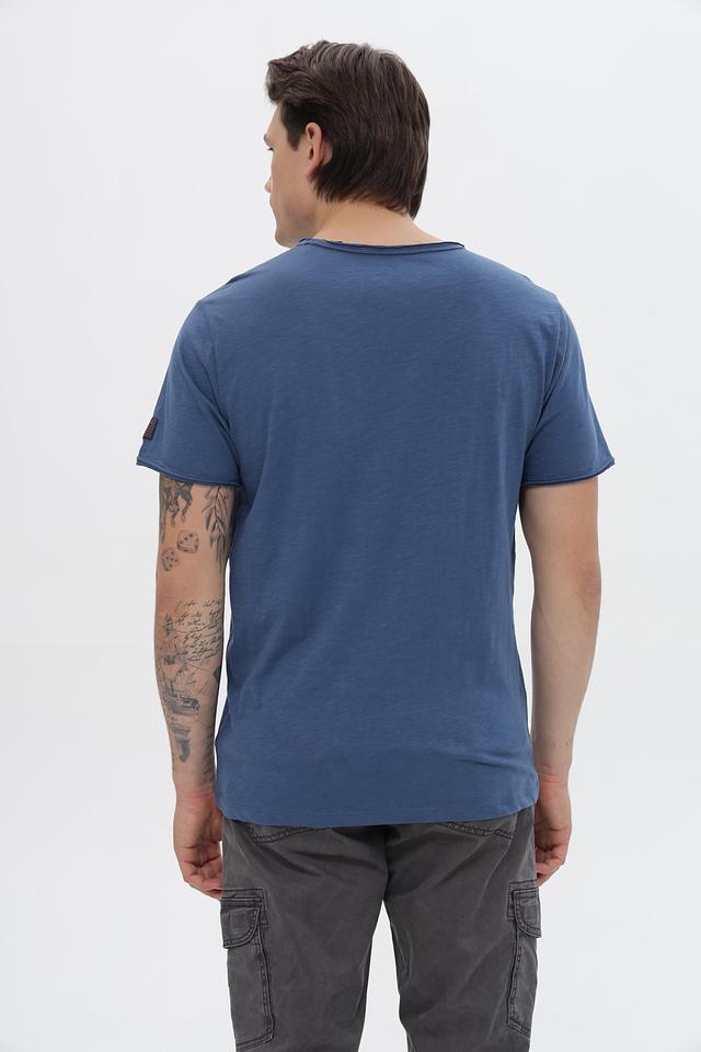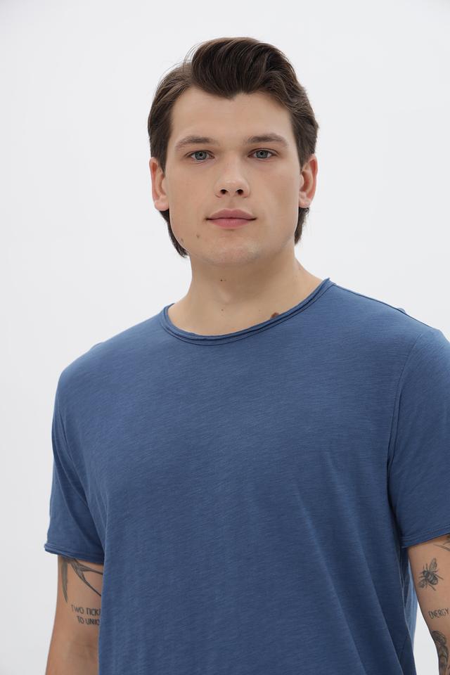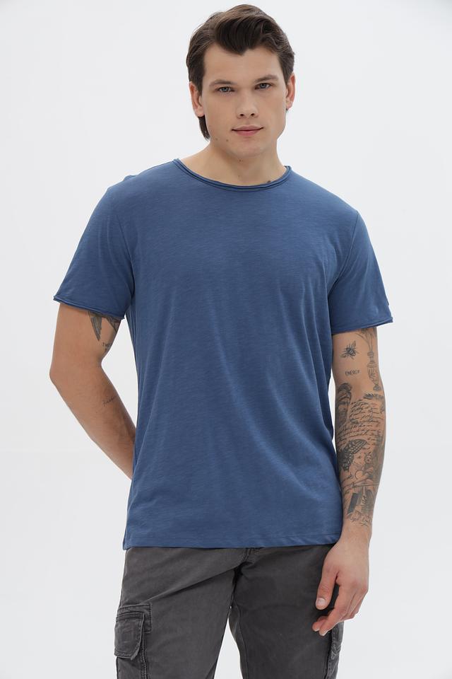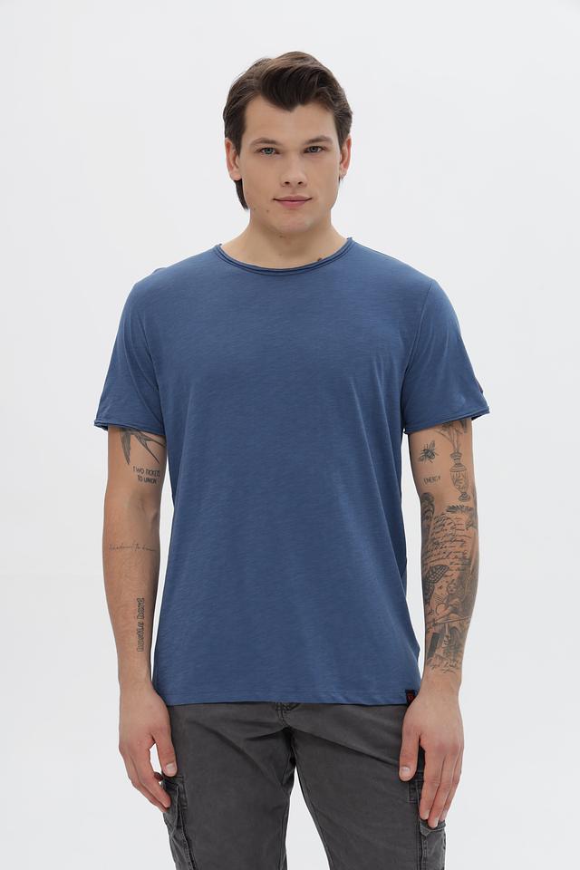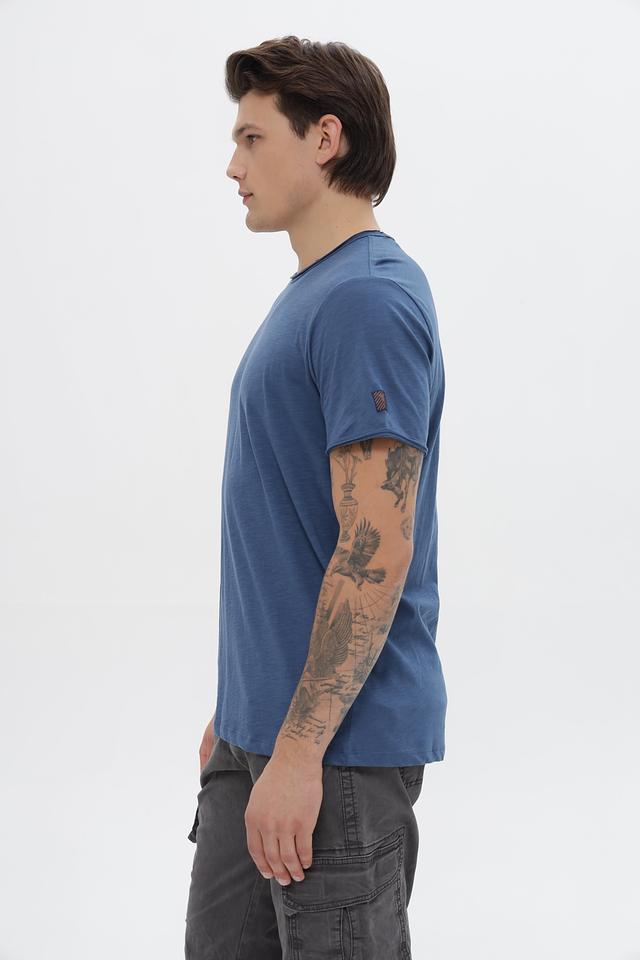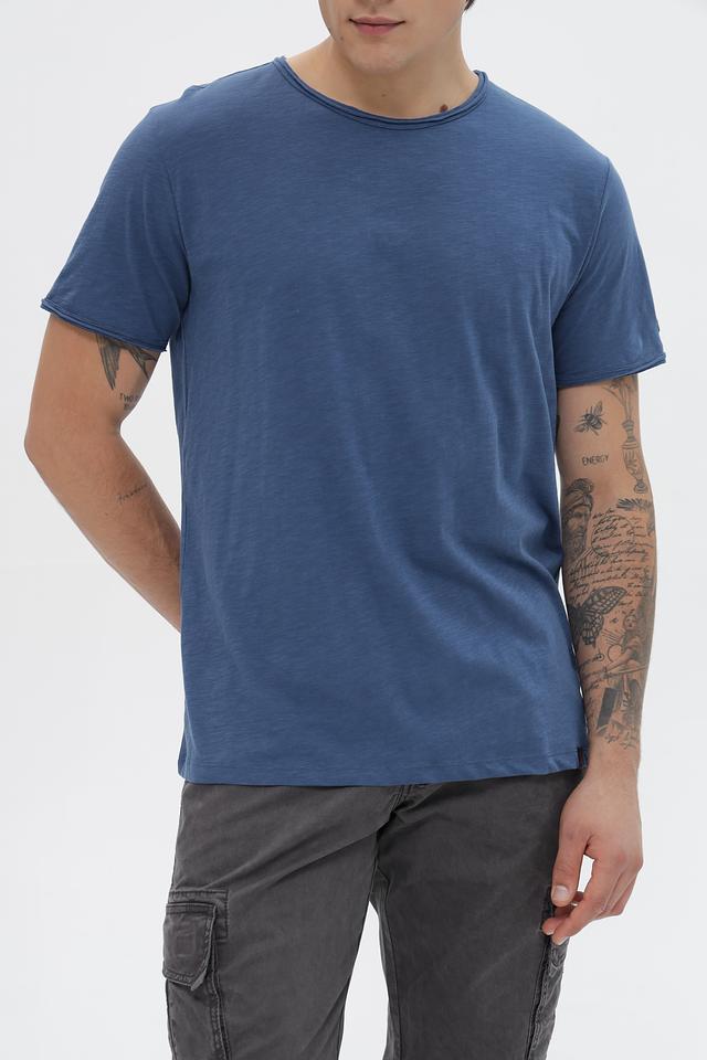 Особенностью данной модели является слегка спущенная линия плеч, которая придает футболке более расслабленный и современный вид. Цвет футболки – насыщенный синий, который легко сочетается с различными элементами гардероба.