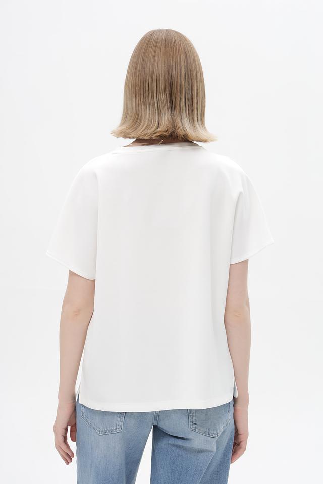 Блуза изготовлена из приятной к телу ткани, сочетающей в себе модал (53%), полиэстер (40%) и эластан (7%). Благодаря такому составу, изделие хорошо держит форму, не мнется и обладает небольшим эффектом эластичности.