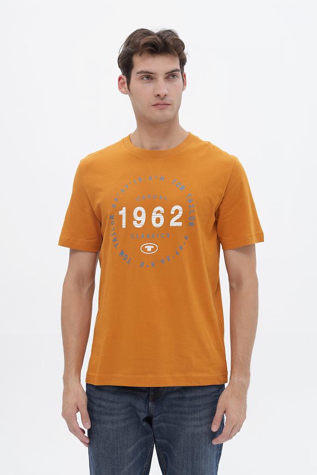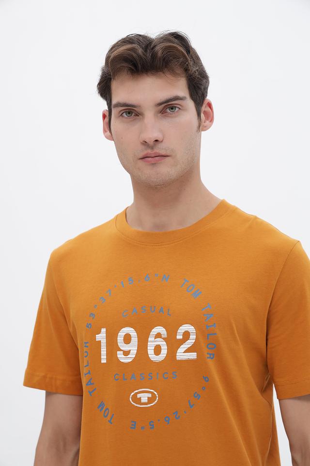 Мужская футболка Tom Tailor горчичного цвета с оригинальным принтом "1962". Изготовлена из 100% хлопка, обеспечивающего комфорт и воздухопроницаемость. Отличный выбор для повседневного образа. Состав: хлопок 100%