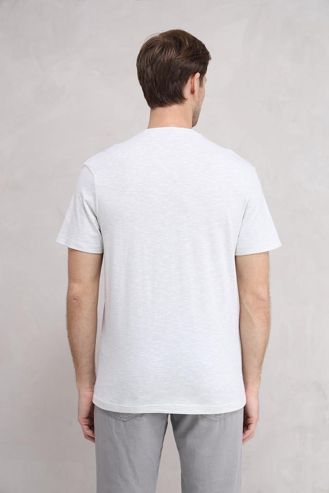 Мужская футболка Tom Tailor denim серого меланжевого цвета с небольшим принтом на груди. Изготовлена из 100% хлопка, обеспечивающего комфорт и воздухопроницаемость. Состав: хлопок 100%