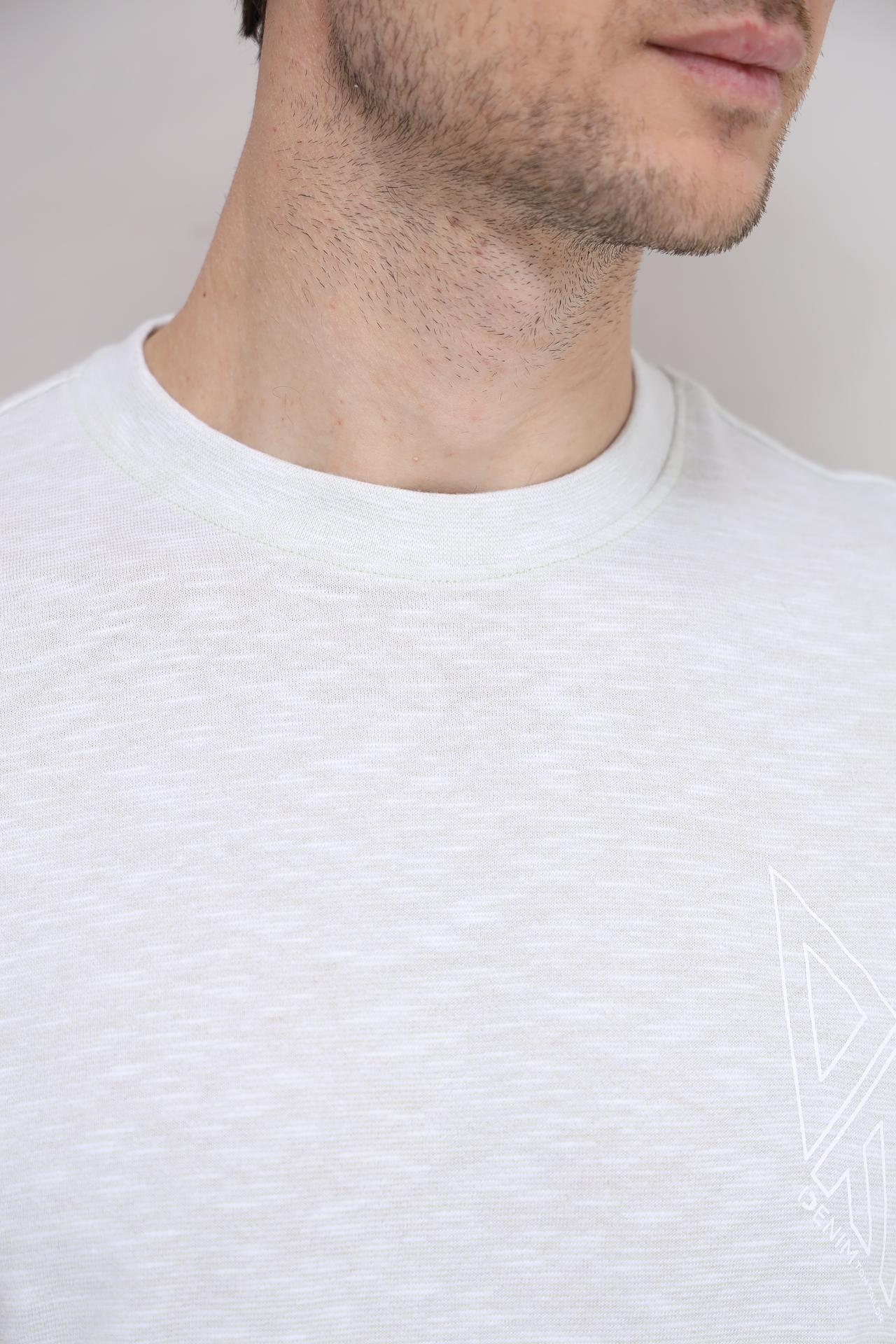 - Дизайн: Однотонная футболка с меланжевым эффектом и небольшим принтом. Лаконичный дизайн позволяет легко сочетать ее с различной одеждой.