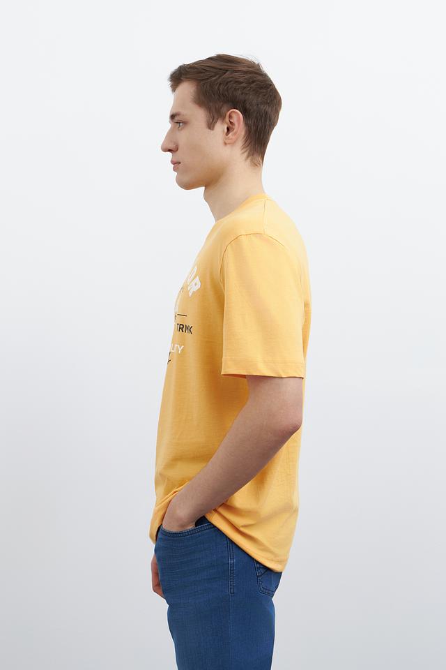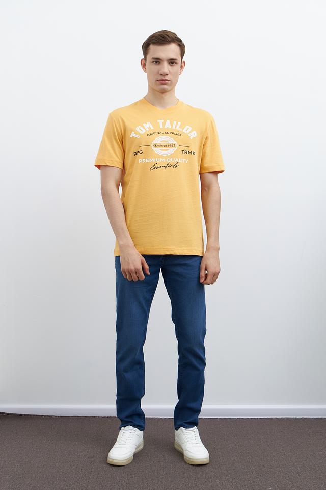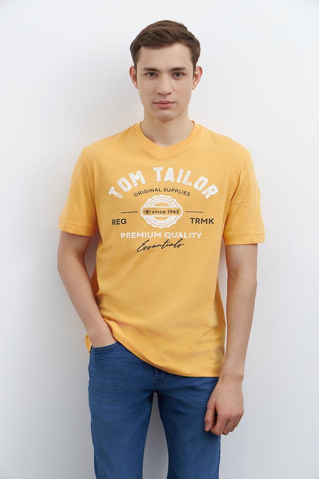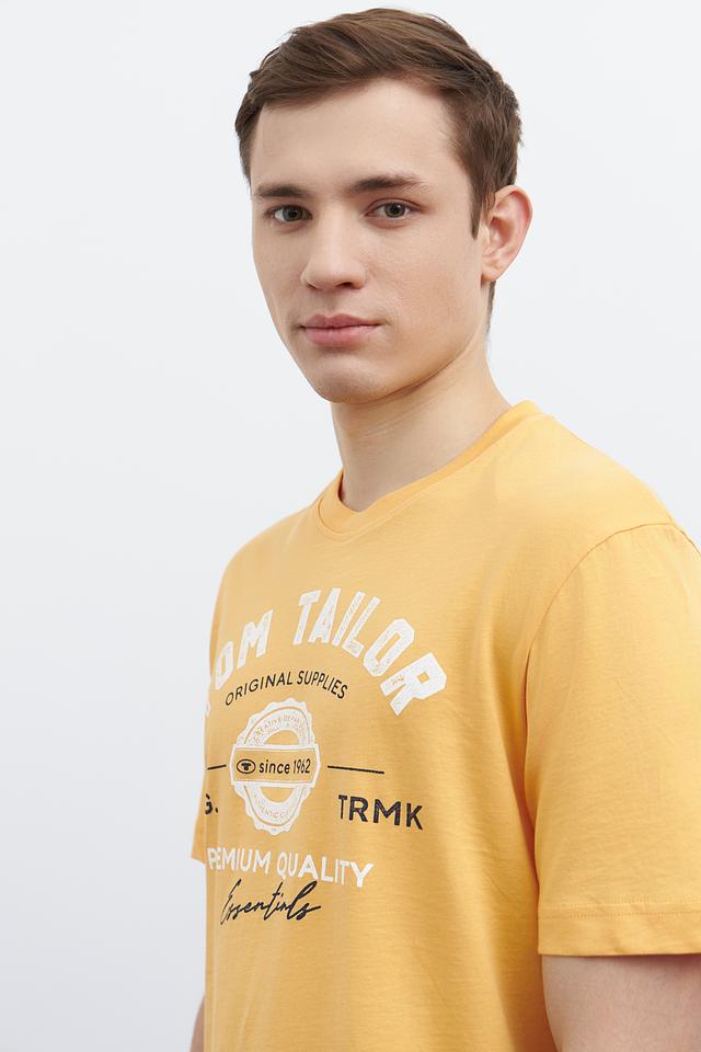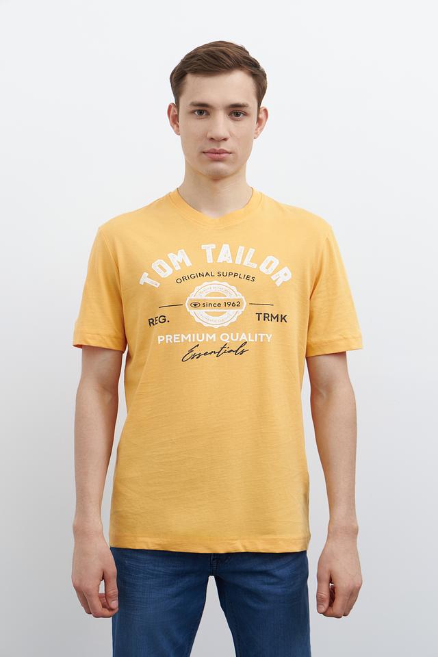 Мужская футболка Tom Tailor горчичного цвета с оригинальным принтом на груди. Изготовлена из 100% хлопка, обеспечивающего комфорт и воздухопроницаемость. Отличный выбор для повседневного образа. Состав: хлопок 100%