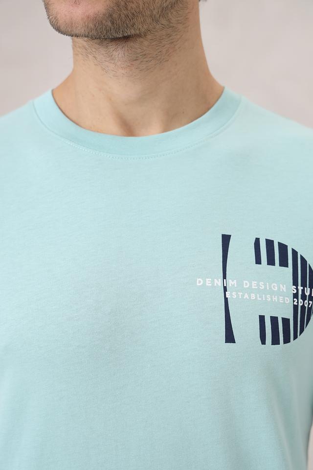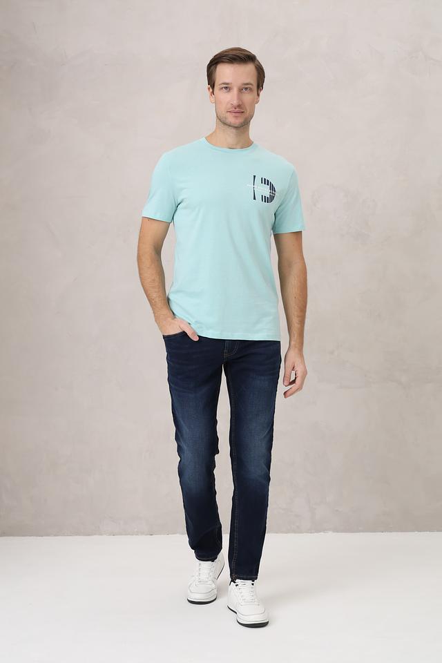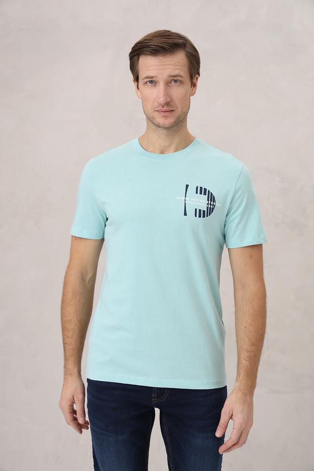 Мужская футболка Tom Tailor denim голубого цвета с принтом на груди. Изготовлена из 100% хлопка, обеспечивающего комфорт и воздухопроницаемость. Отличный выбор для повседневного образа. Состав: хлопок 100%