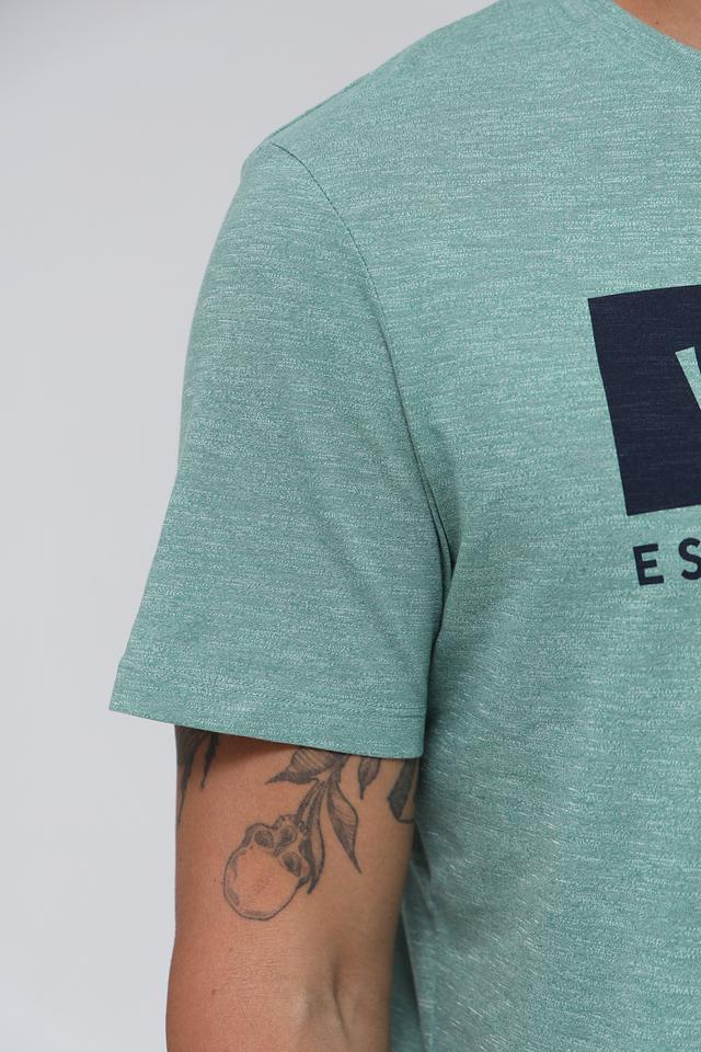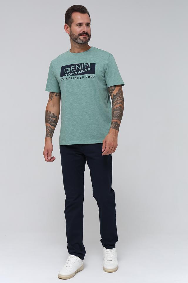 Мужская футболка Tom Tailor denim цвета мяты с эффектным принтом на груди. Изготовлена из сочетания хлопка и полиэстера, обеспечивая комфорт и практичность в носке. Отличный выбор для повседневного образа. Состав: полиэстер 50%, хлопок 50%