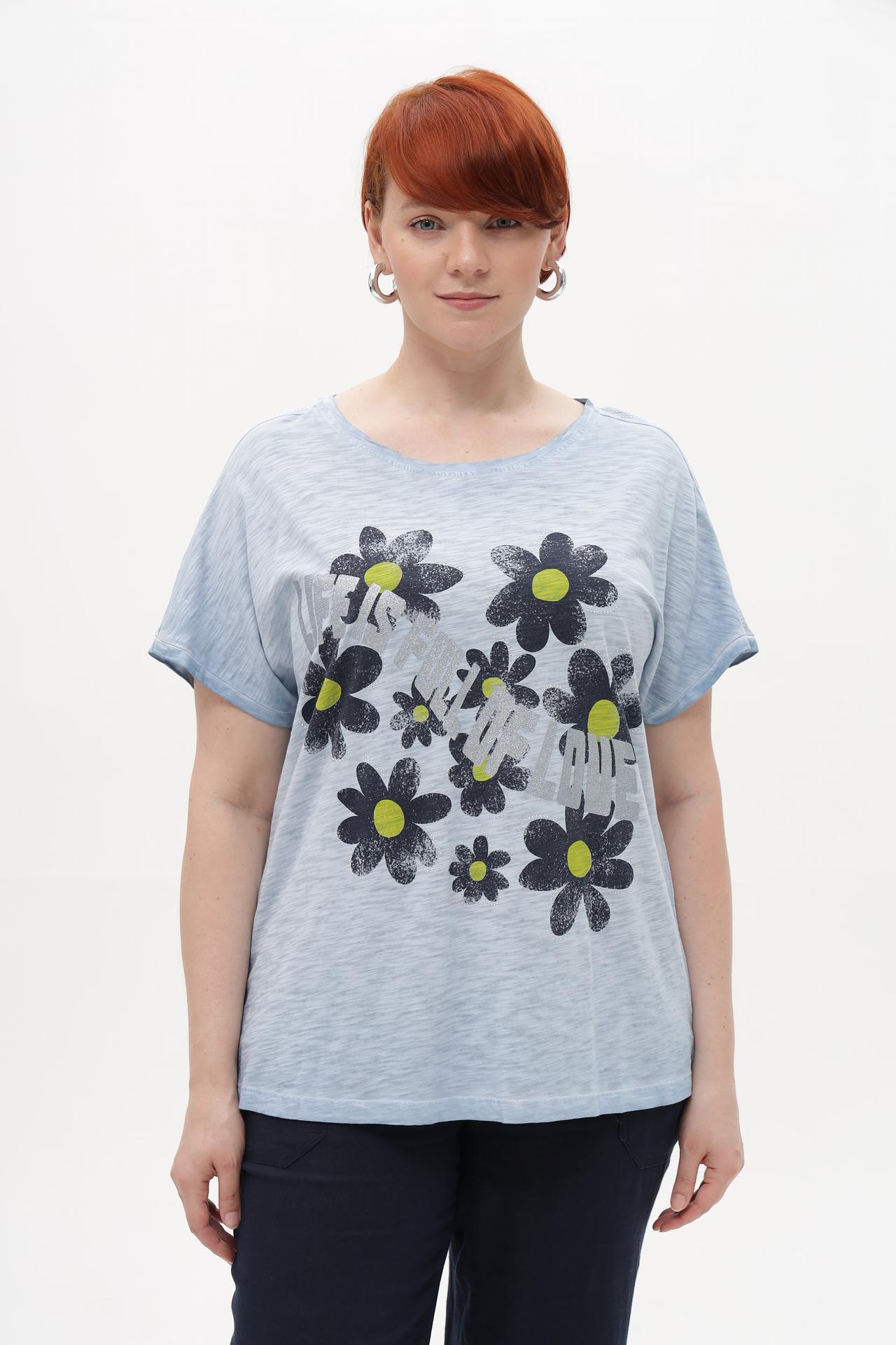 Футболка Via Appia, голубая с цветочным принтом