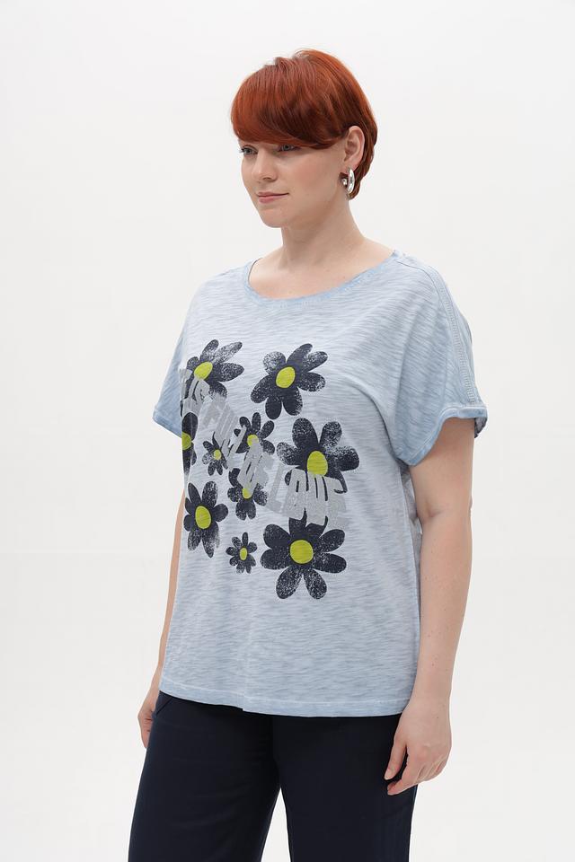 Женская футболка Via Appia голубого цвета с оригинальным цветочным принтом. Изготовлена из мягкого хлопка с добавлением вискозы для комфорта и приятных тактильных ощущений. Состав: хлопок 52%, вискоза 48%