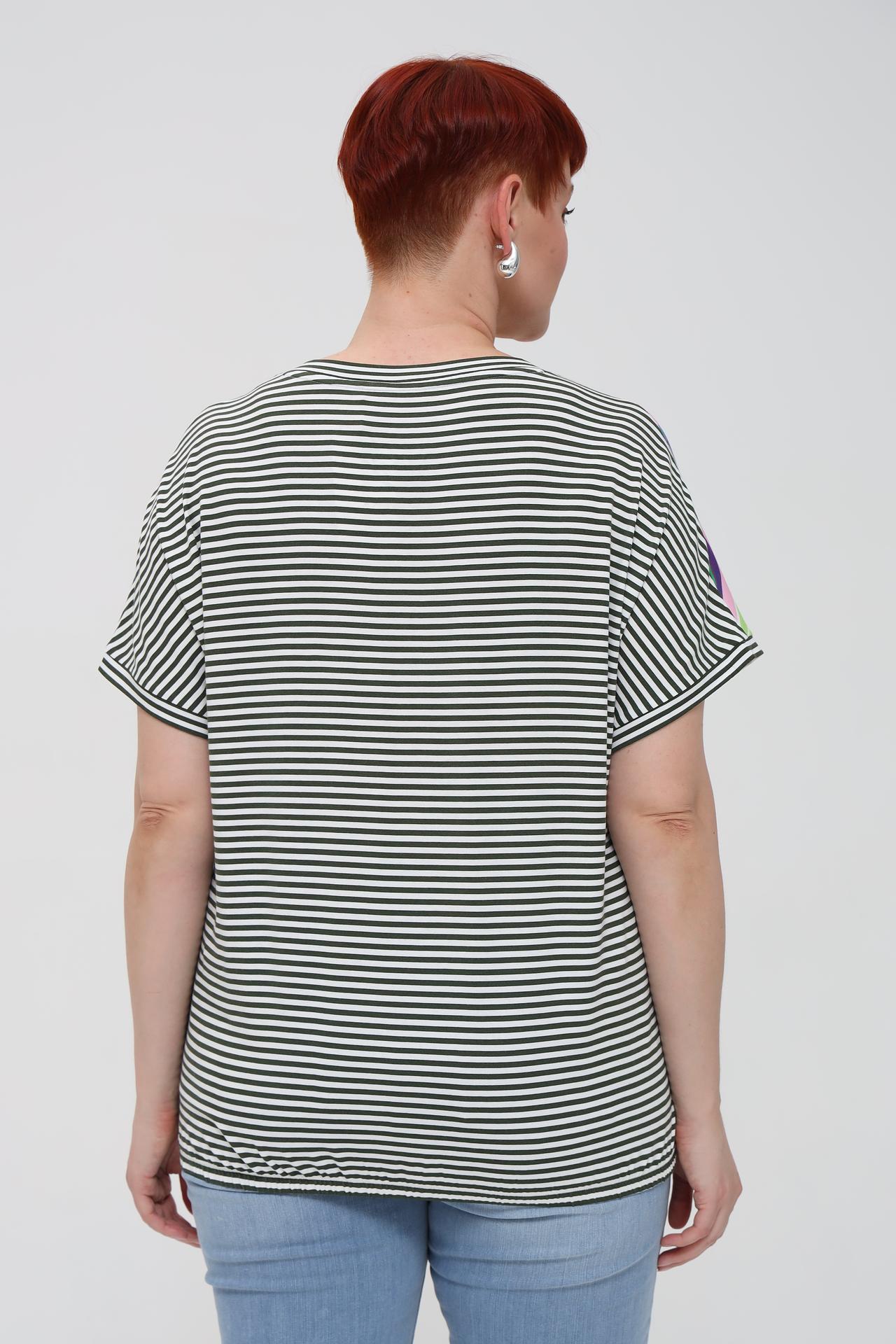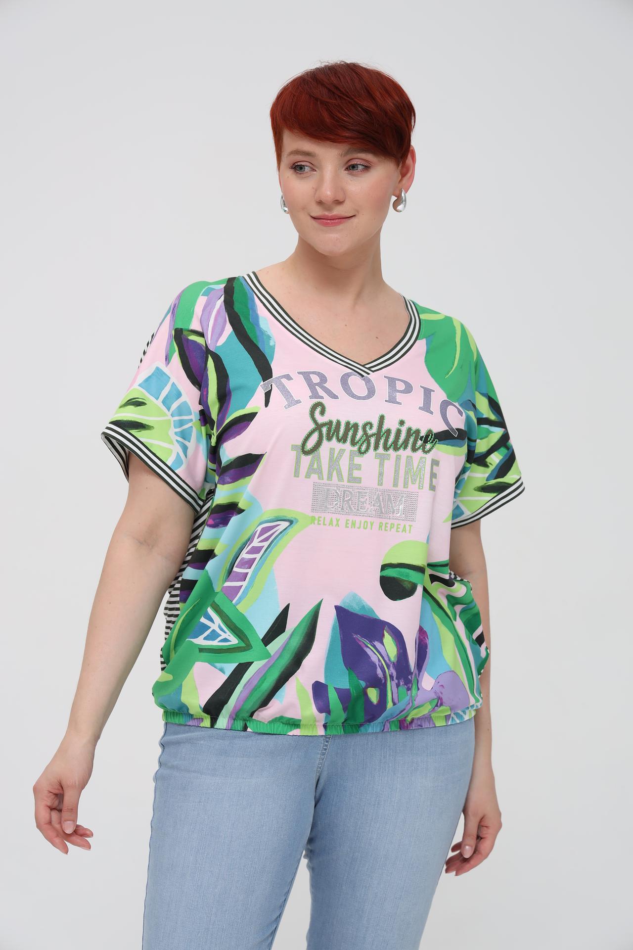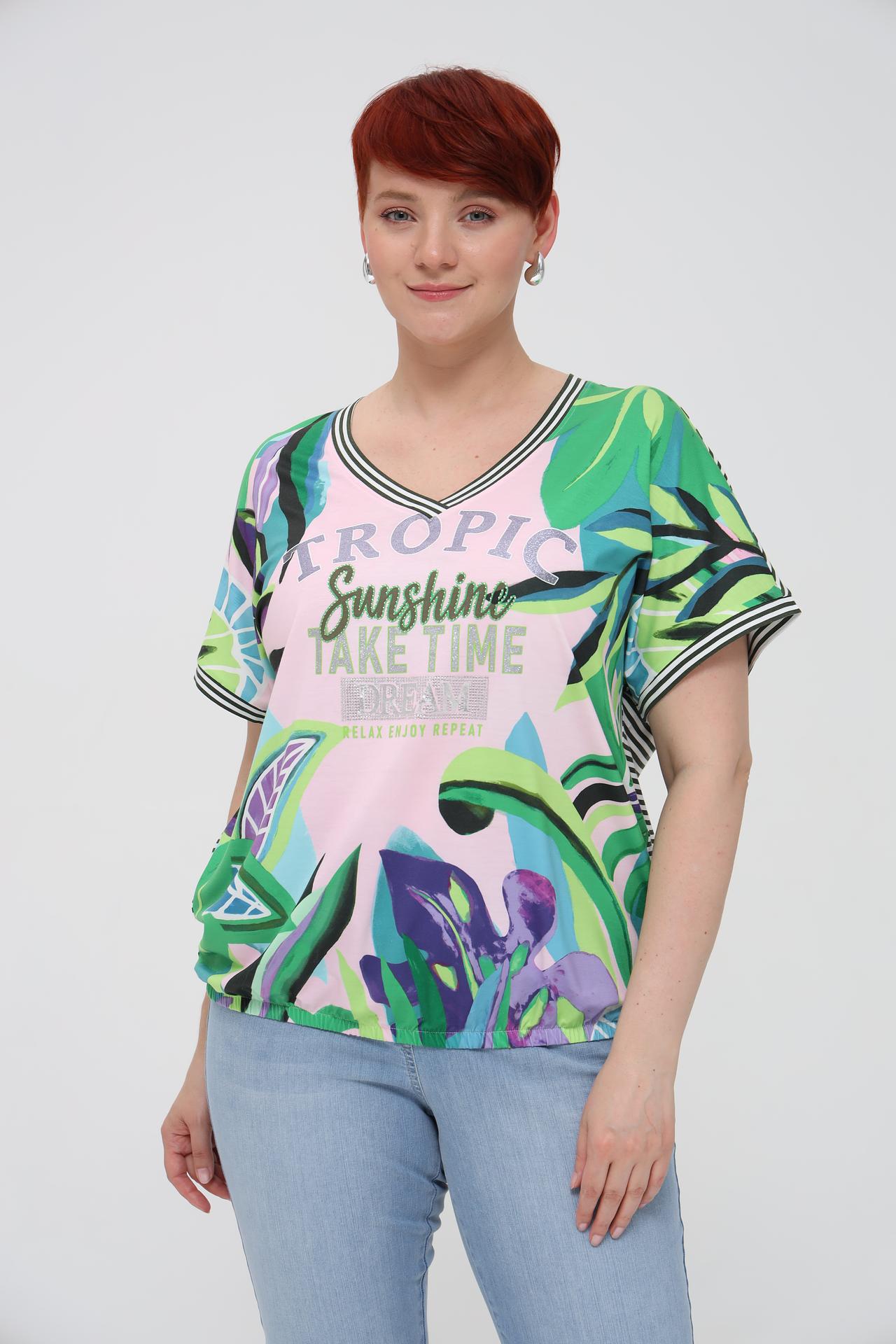 Футболка Via Appia, розовый тропический принт, полосы, блестки