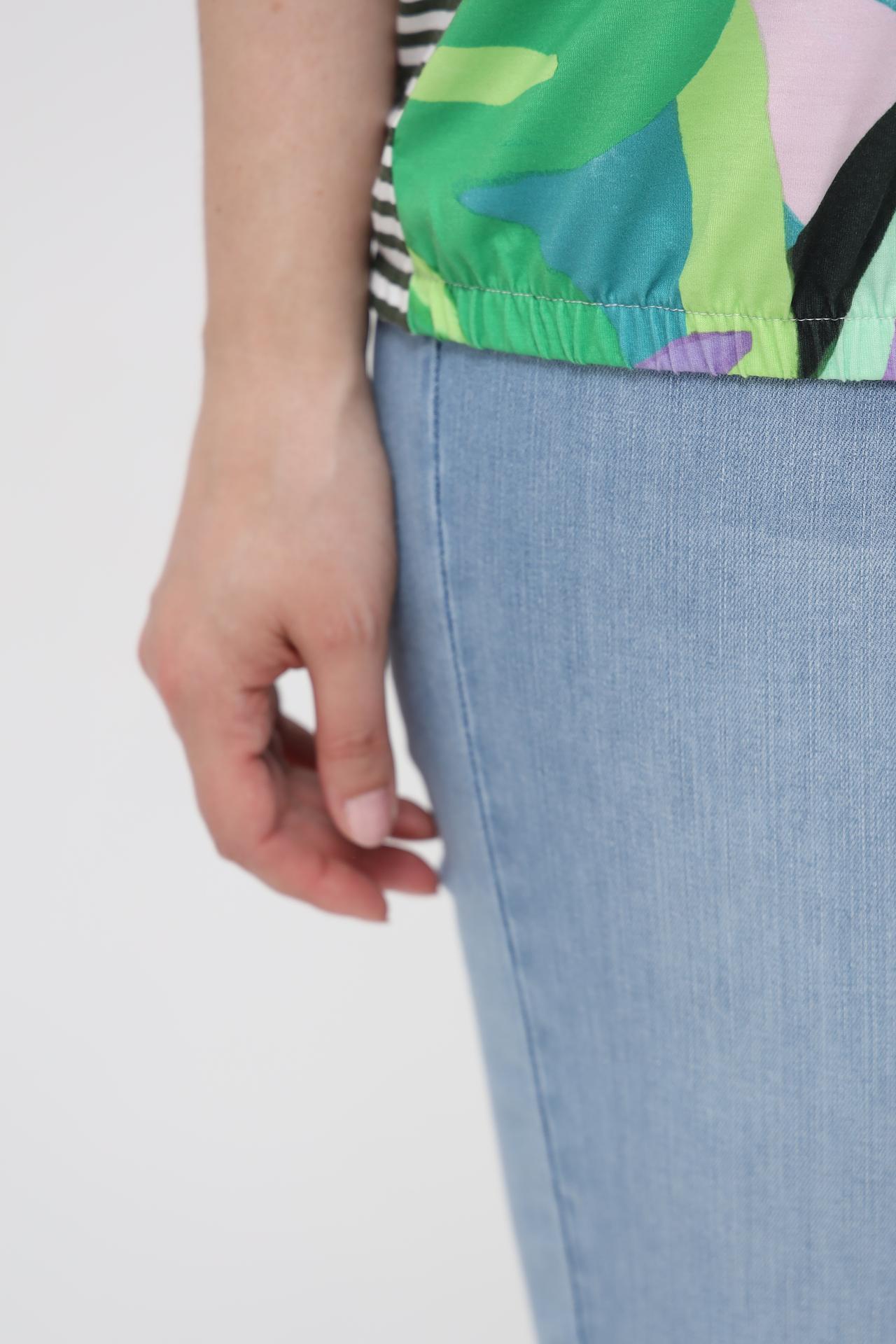 - Универсальность стиля. Эта футболка легко сочетается с джинсами, шортами или юбками, создавая расслабленный повседневный лук или эффектный наряд для летних вечеринок.