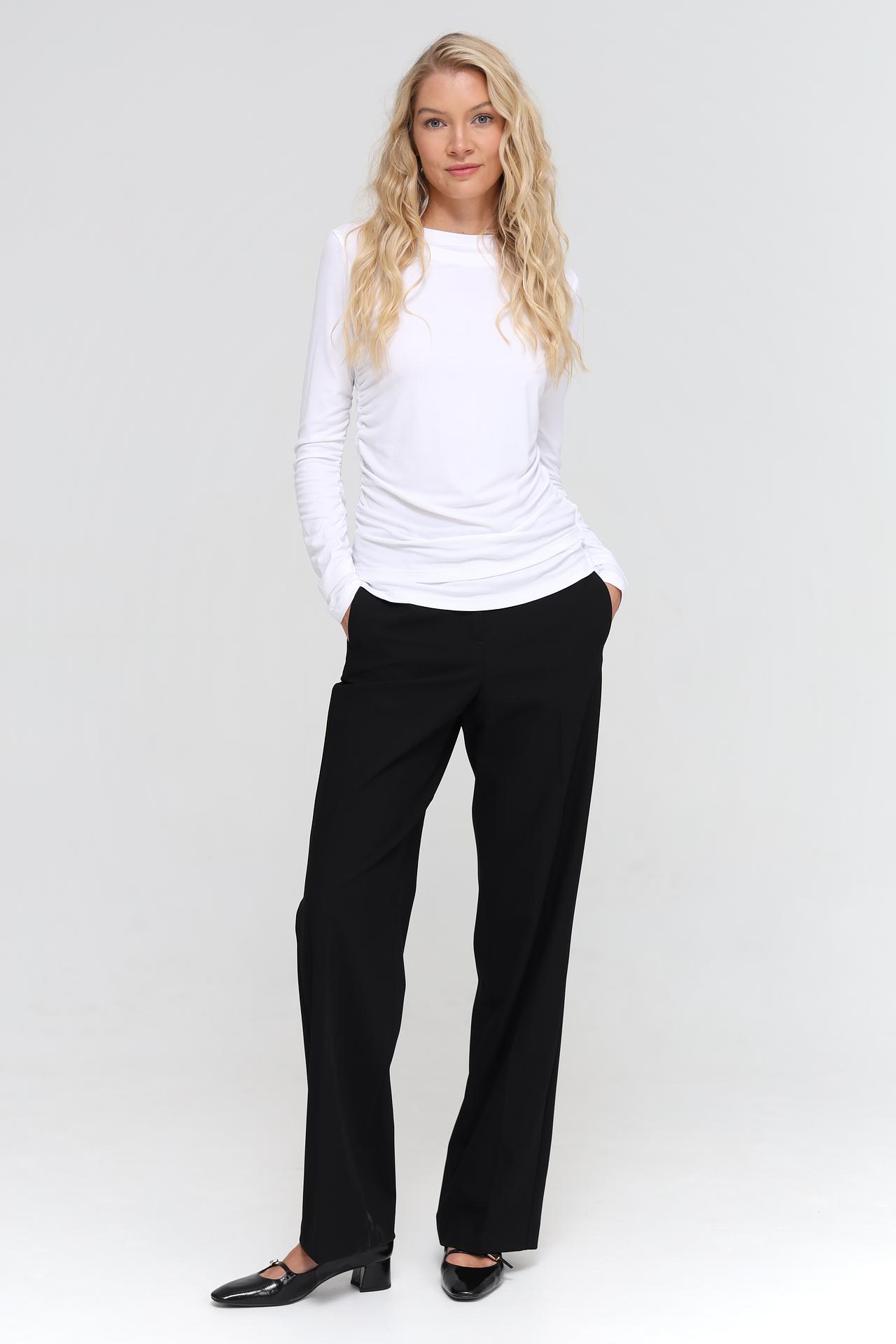 - Комфорт и практичность: Брюки не сковывают движений и легко сочетаются с различной одеждой, от блузок до трикотажа.