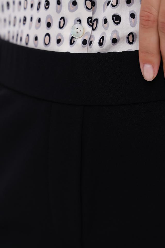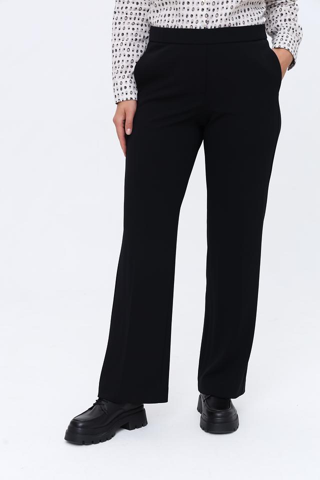 Брюки имеют прямой крой, обеспечивающий комфортную посадку и свободу движений. Высокая посадка подчеркивает талию и визуально удлиняет ноги. Ткань, состоящая из полиэстера и эластана, приятна на ощупь и обеспечивает хорошую износостойкость.