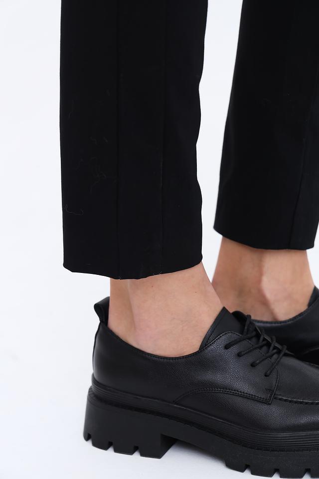 Брюки выполнены из высококачественной вискозы, которая обеспечивает комфорт и воздухопроницаемость. Добавление полиамида и эластана придает ткани прочность, эластичность и устойчивость к деформации.