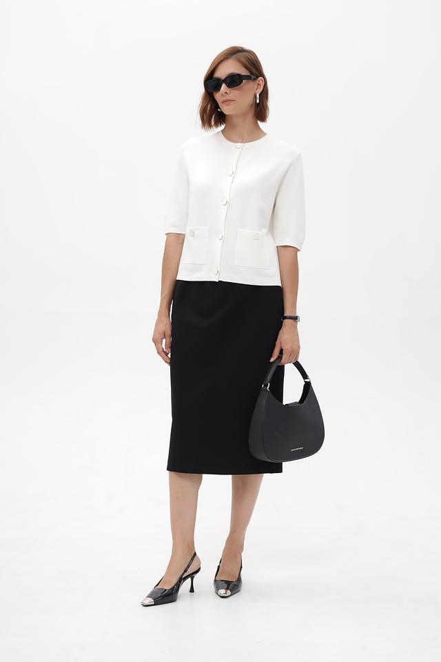 Благодаря лаконичному дизайну и нейтральному цвету, эта юбка легко сочетается с различными топами, блузами и жакетами, позволяя создавать разнообразные образы для работы, учебы или повседневной жизни. Боковой разрез добавляет изюминку в образ.