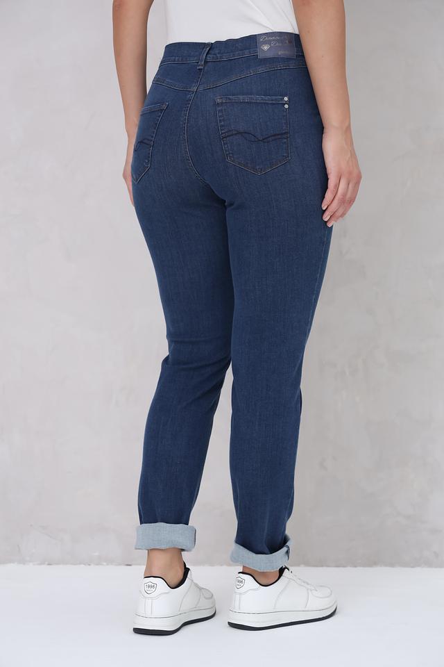 Джинсы имеют завышенную талию и прямой крой, который подчеркивает фигуру и обеспечивает комфортную посадку. Ткань состоит из сочетания лиоцела, хлопка, вискозы, полиэстера и эластана, что делает джинсы приятными на ощупь, износостойкими и эластичными.
