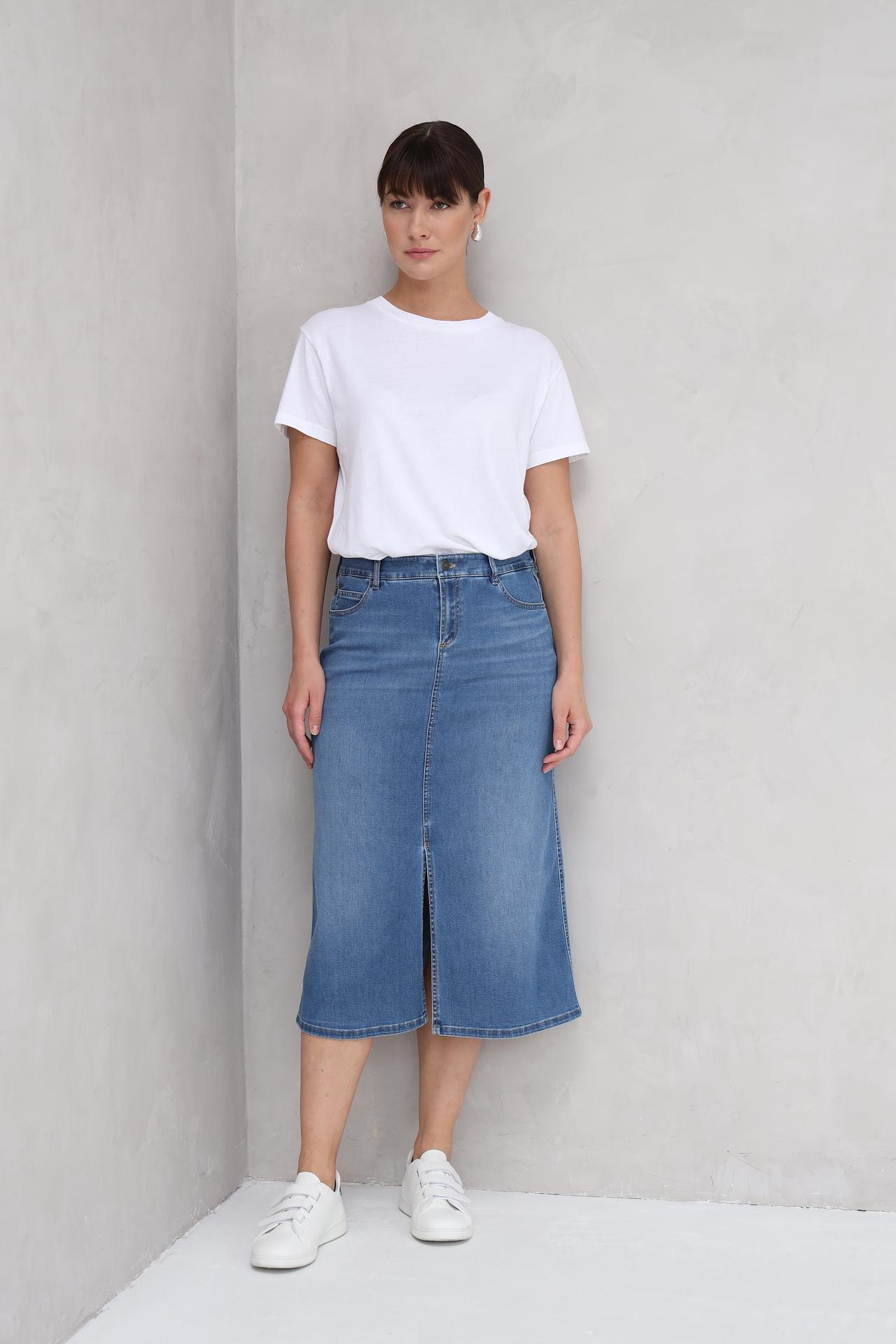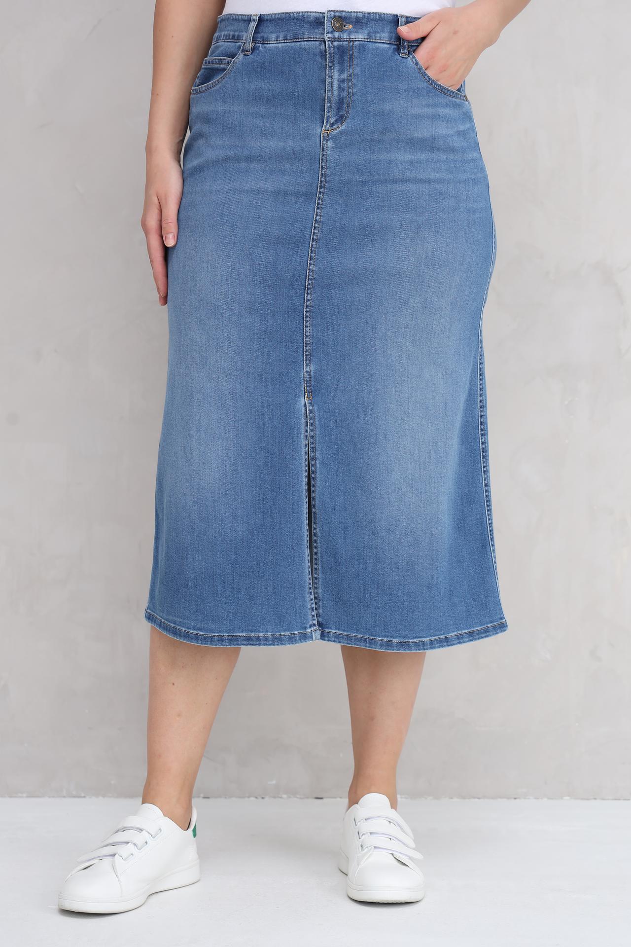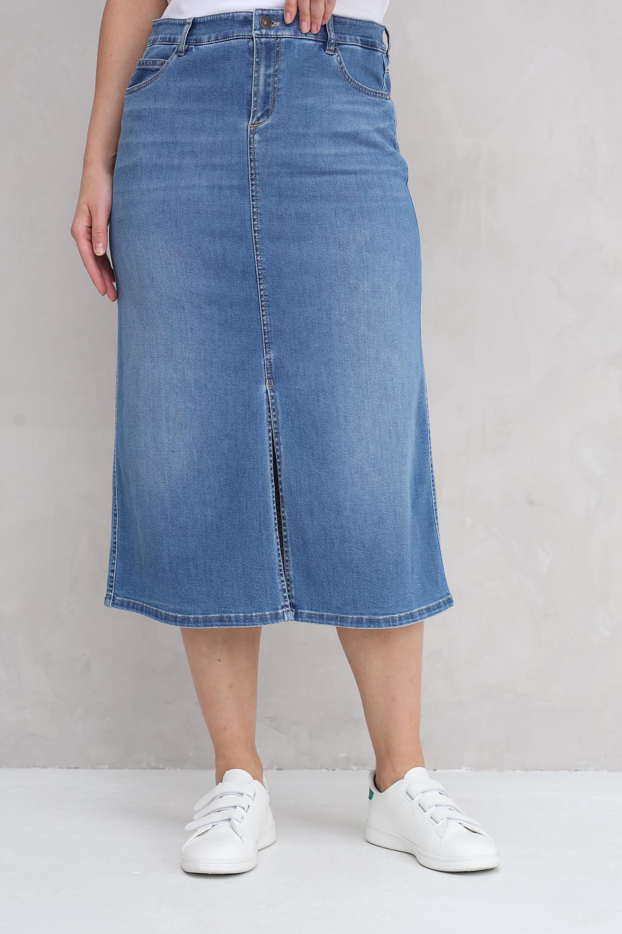 - Универсальный дизайн: Классический джинсовый оттенок и прямой силуэт с деликатным разрезом спереди позволяют легко сочетать юбку как с casual-верхом, так и с более элегантными блузами, создавая разнообразные стильные образы.