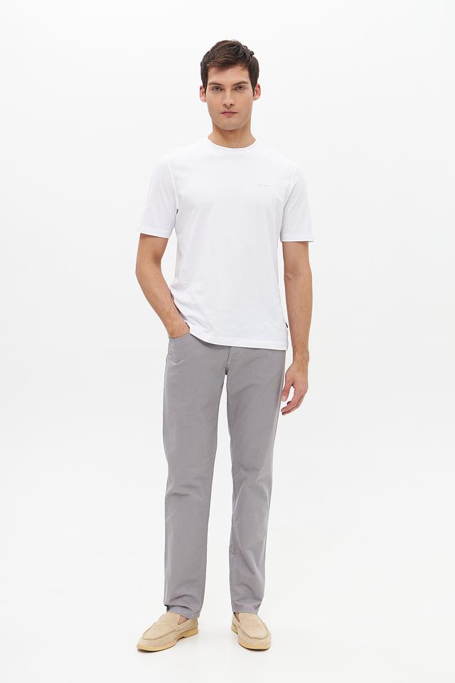 Брюки имеют стандартную посадку, застежку на молнию и пуговицу, а также функциональные карманы. Лаконичный дизайн делает их универсальными и подходящими для различных случаев – от повседневной носки до деловых встреч.